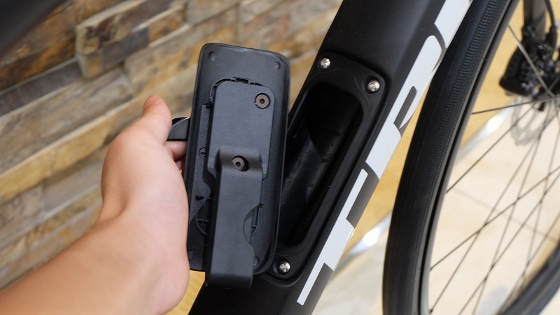 DOMANE SL 5には、実用性に優れた内蔵フレーム収納が備わっています。ダウンチューブ下部のパネルを開けると専用コンパートメントが現れ、予備チューブやタイヤレバー、マルチツール、CO2ボンベなどライド必携の小物をスマートに収納可能です。これにより、サドルバッグを使用せずにツール類を一体化でき、見た目もスッキリ。さらにボトルケージのスペースを有効に使えるため、ロングライド時にはボトルを2本持ち運ぶことも容易になります。機能性と美しさを両立させたこのストレージは、DOMANEならではの大きな魅力です。