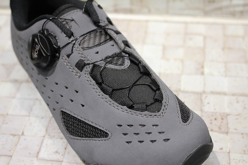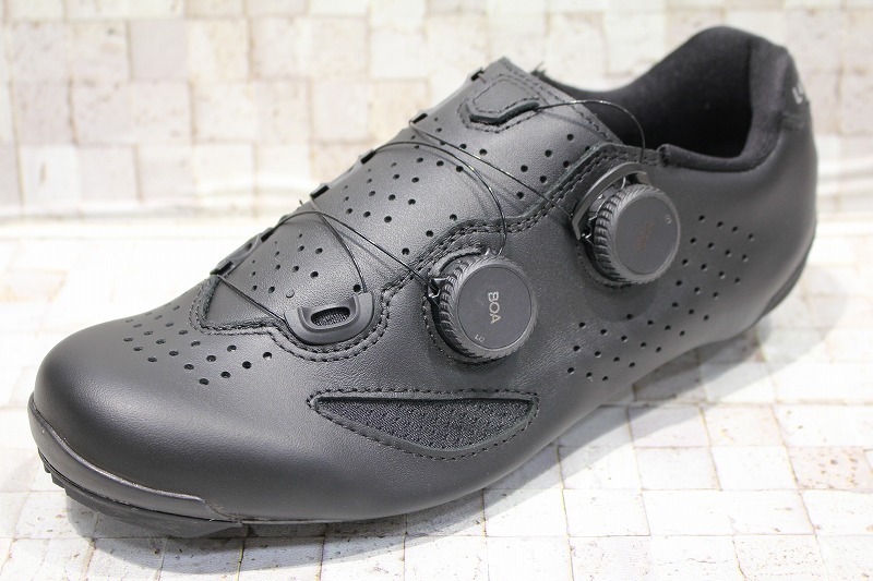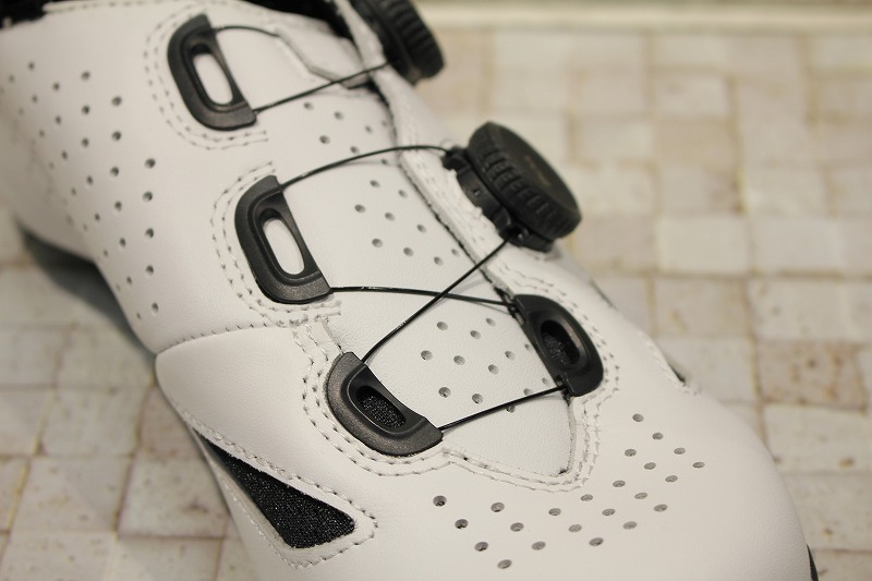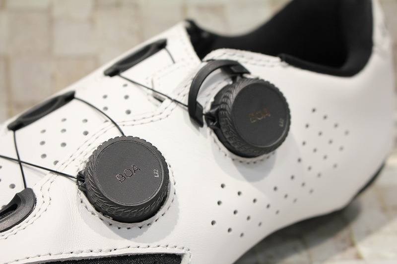 最新モデルであるCX239は牛本革を使用したアッパーを採用しています。ベストセラーCX333からの技術流用を受け、一体型のタン構造と間隔が広いBOAダイヤルの配置により、踏み込んだ時のホールド感がしっかりしており、尚且つレザー特有のしなやかさも持ち合わせるシューズです。