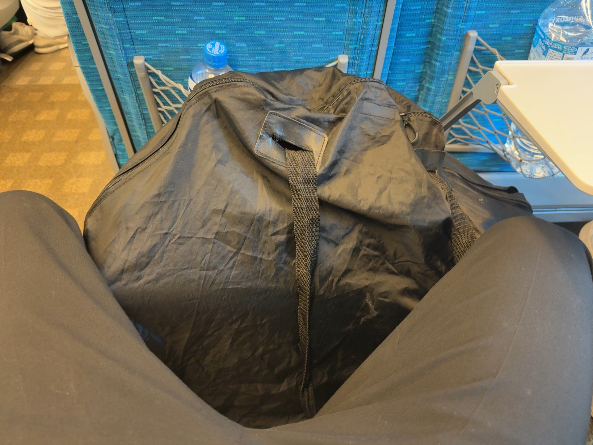 新幹線では、特大荷物で予約しようと考えましたが、他のお客さんが少ないため足元に置くことにしました。イメージは画像みたいな感じ。大きいわけでもなく足元のスペースにすっぽり入りました。このコンパクトさがK3の良い点ですよね~。※人の混み具合によっては特大荷物で予約する可能性ありです。