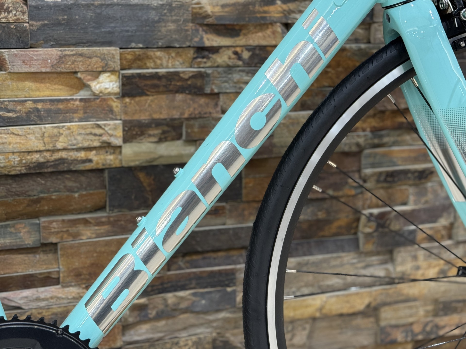 Bianchiのエントリーロードとして位置づけされており、長年支持されてきました。まずはBIANCHIの特徴カラーであるチェレステ。ポップなカラーリングで街乗り~サイクリングでもおしゃれに走行できます。他ブランドではあまりこのカラーリングも少なく、差別化ができそこもいい点ですね。素材にはハイドロフォーミング加工を施したアルミ合金を採用。複雑なパイプ形状を可能にすることで、剛性を必要とする部分にはしっかりと厚みを持たせ、不要な部分は軽量化するなど、効率の良いフレーム設計がされています。ペダリング時の力を無駄なく推進力に変えつつ、扱いやすさを損なわないバランスが実現されています。