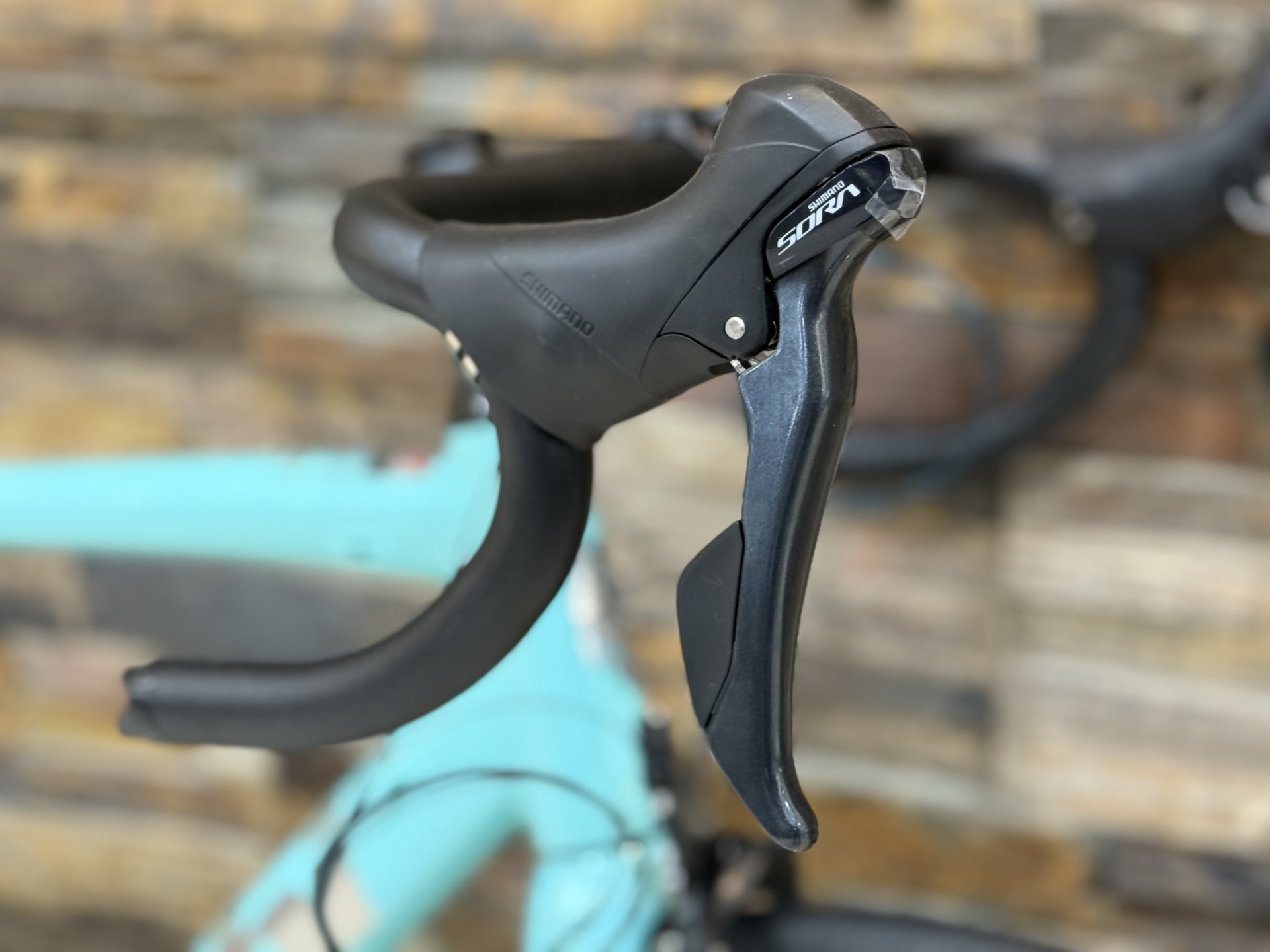シマノSORAを中心とした2×9速仕様です。SORAはシマノのロード用コンポの中でもエントリーグレードに位置しますが、上位モデルの設計思想を取り入れており、スムーズで確実な変速性能を実現しています。STIレバーはブレーキと変速操作を一体化したもので、軽い力で直感的に操作でき、初心者でも扱いやすいのが特長です。昨今ではディスクブレーキが主流になってきていますが、今回ご紹介する車体はリムブレーキモデル。シンプル構造の為重さもその分軽量になり価格も抑えることが出来ます。剛性や信頼性を確保しながらコストを抑えてるこのコンポーネント構成は初心者がロードバイクに慣れるのに十分な性能を持っています。