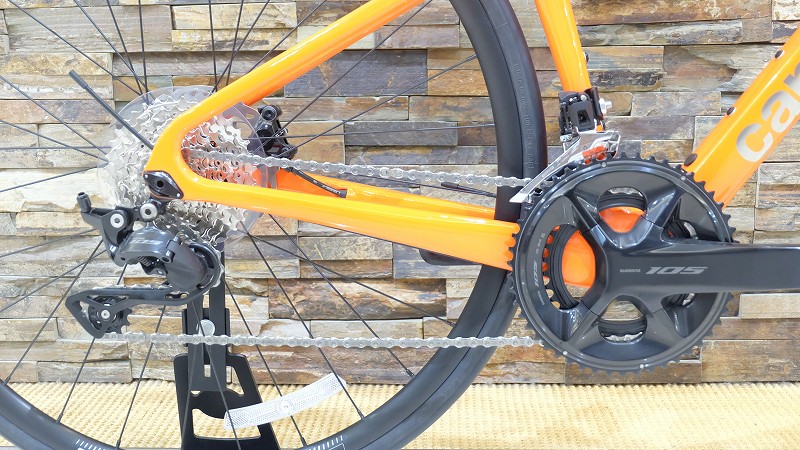 Cannondale SuperSix EVO4には、信頼性の高いシマノ105が搭載されています。フロントはダブル、リアは12速仕様となっており、幅広いギア比により平坦から急な登りまでスムーズな走行をサポートします。また、シマノ105は上位グレードとの互換性も確保されているため、将来的にDi2へアップグレードすることも可能です。初めてのロードバイクとしても安心して選べる一方で、長く使い続けながらステップアップできる拡張性も大きな魅力となっています。