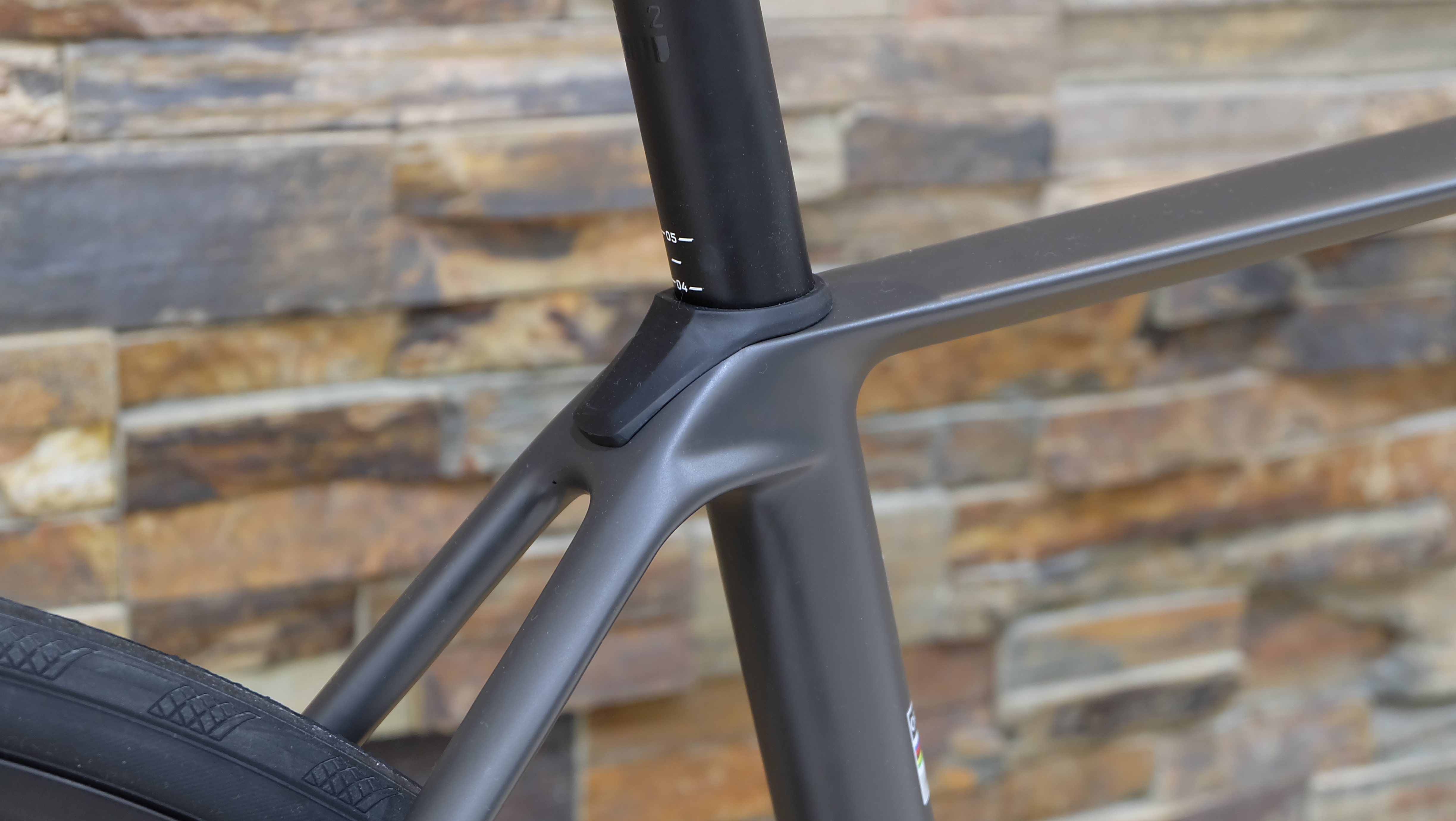 フレームで一番特徴的な部分が薄型のトップチューブです。こうすることで軽量化することはもちろん、剛性を高めたり振動吸収性能を向上したりします。