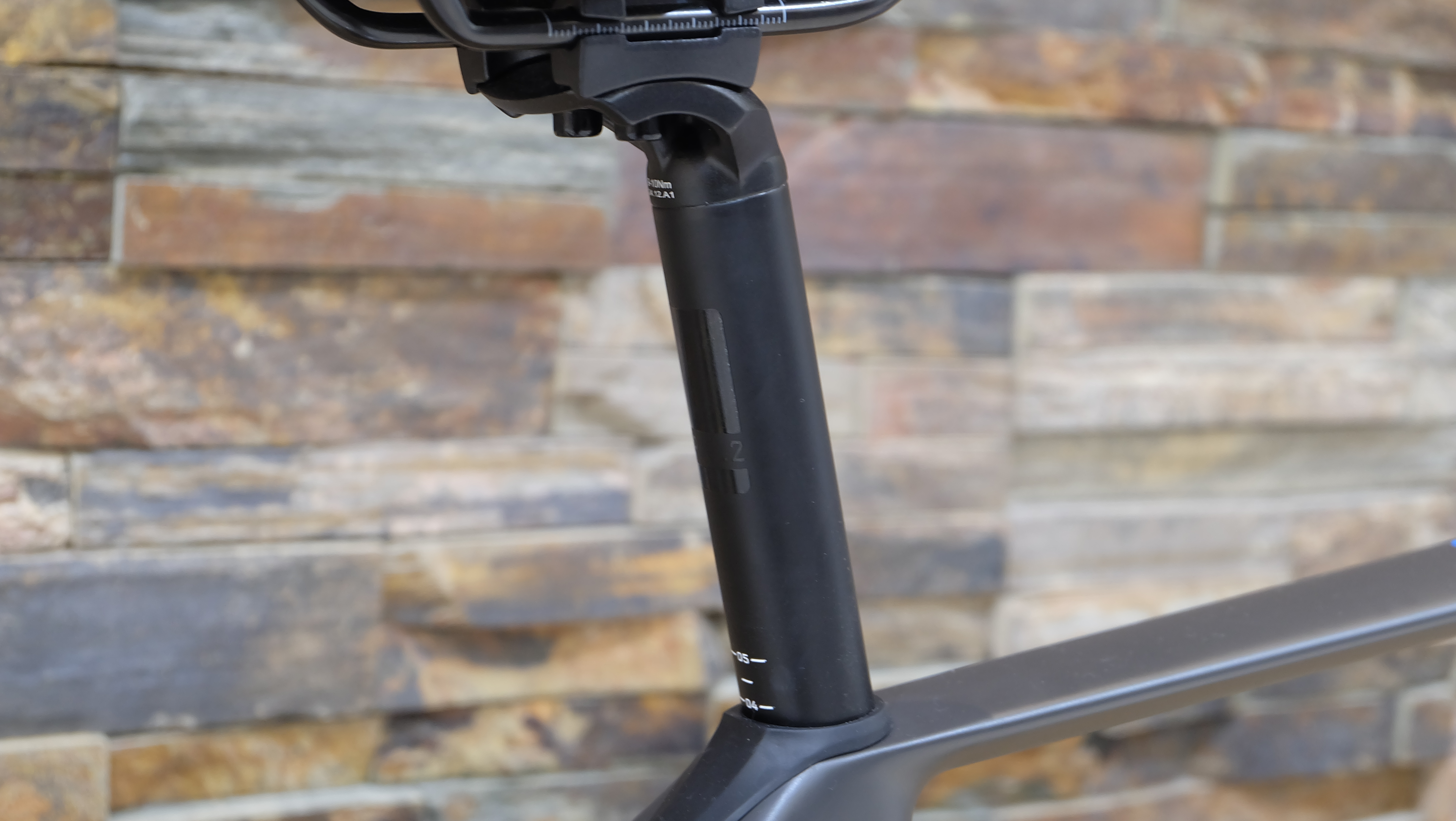 シートクランプ周辺もORBEAにしかないようなデザインをしています。また、シートポストもカーボン製となっており軽量化と快適性に貢献しています。