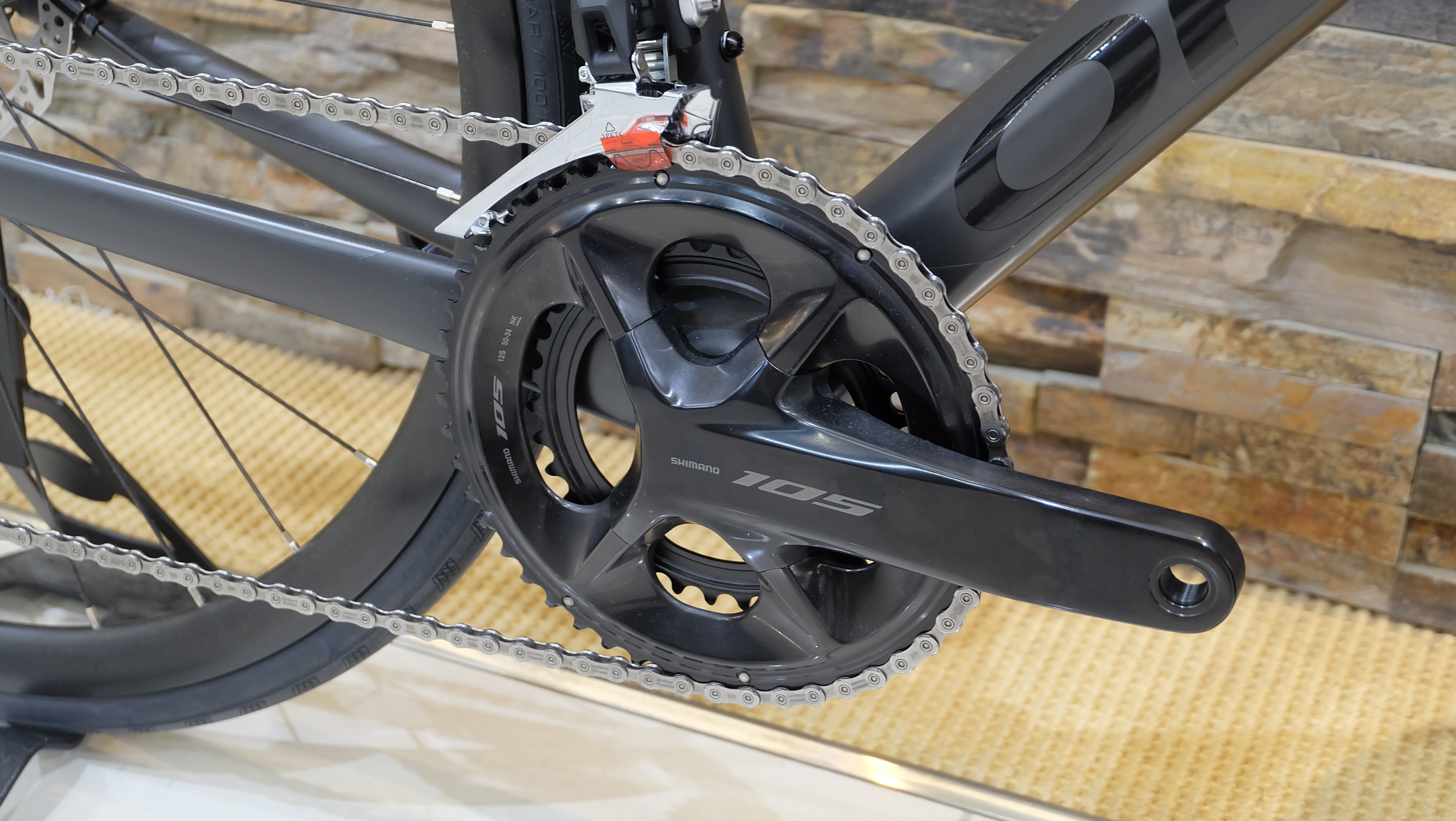 コンポーネントは12速の105が搭載されています。スムーズで確実な変速をすることができ様々なシーンに対応ができます。このモデルには105 Di2搭載モデルやULTEGRA Di2搭載モデルもあるのでそちらも一緒にご検討してみてください。