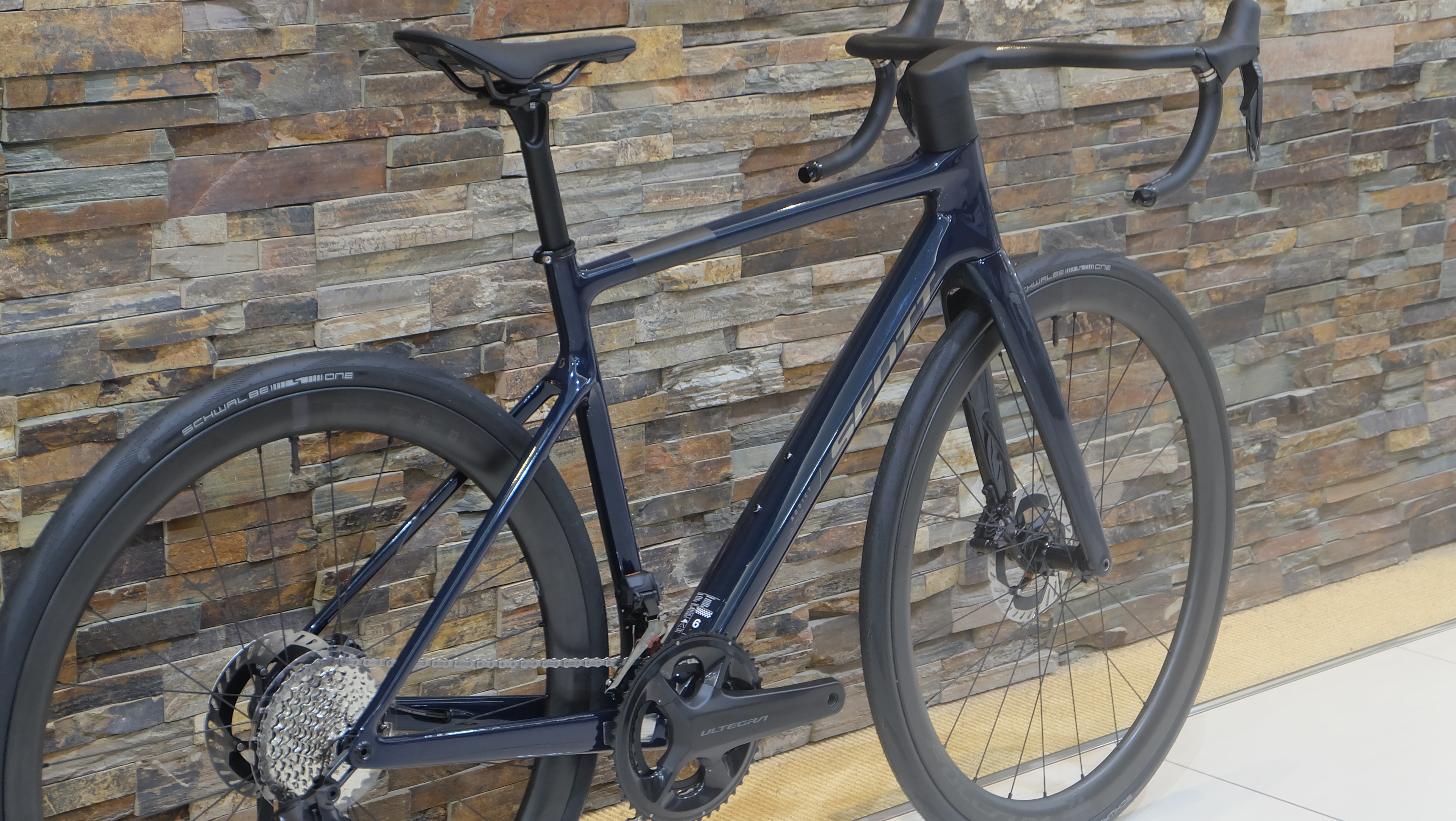 ADDICTには主に2種類ありますが、このADDICTはフラグシップモデルであるADDICT RCをより乗りやすくお求めやすくしたモデルになります。RCはレーシングジオメトリーなのに対し、このモデルはエンデュランスジオメトリーになります。そのため、自転車を漕ぎやすい体勢がとりやすいです。また、カーボンの素材を落として剛性と快適性のバランスをとっています。