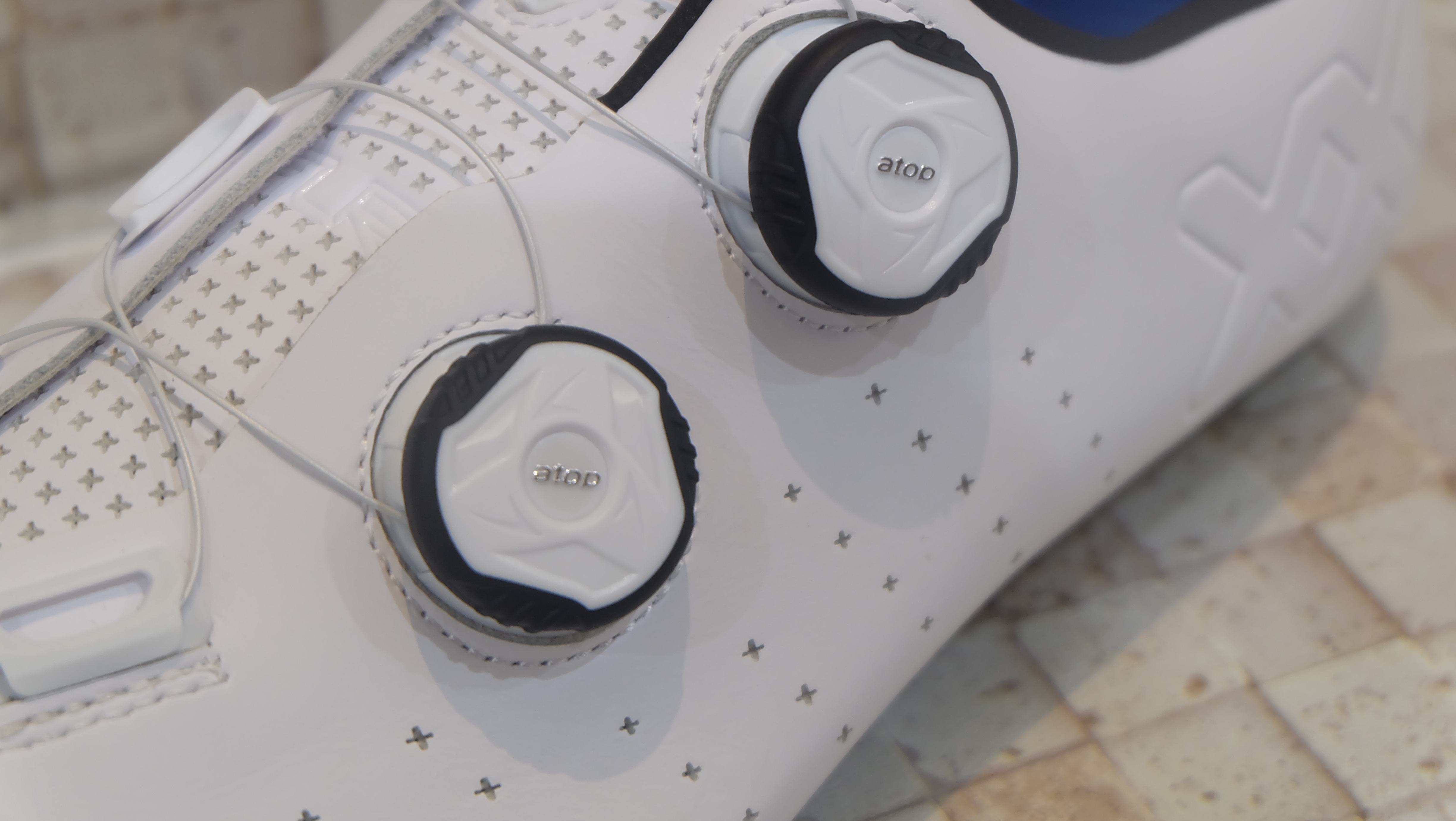 調整はダイヤル式クロージャーA-Topを搭載し、ワンタッチで微調整ができます。BOAダイヤルの様に引っ張ったり押したりする必要が無く、ただ回すだけで調整することが可能です。