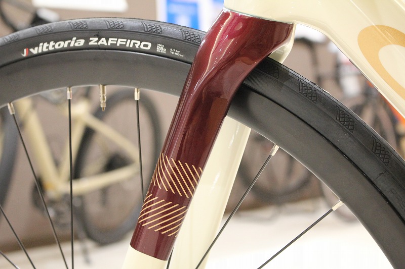 ORBEAは左右非対称のフォークカラーになっており、バーガンディに塗り分けられています。