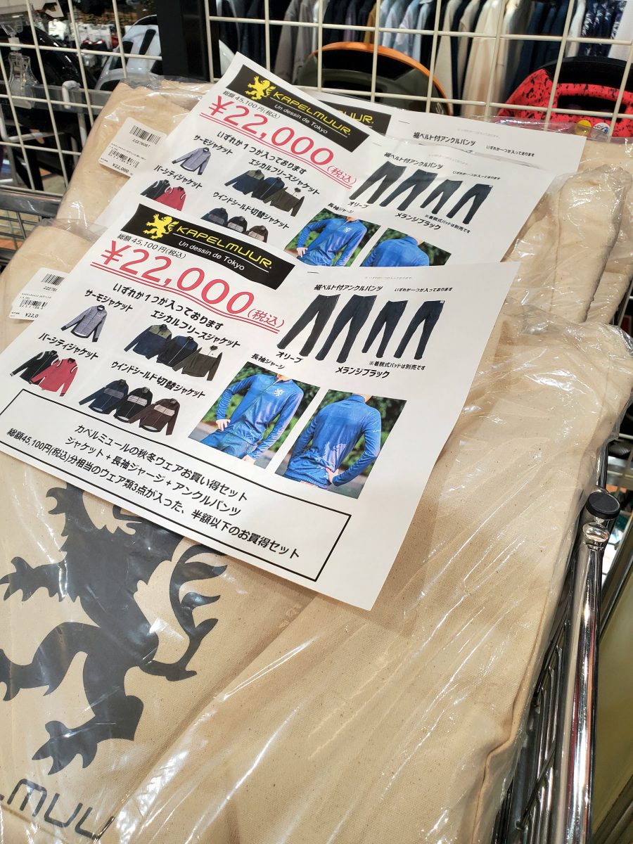 45,100円(税込)分相当のウェア類3点が入った、半額以下のお買得セット