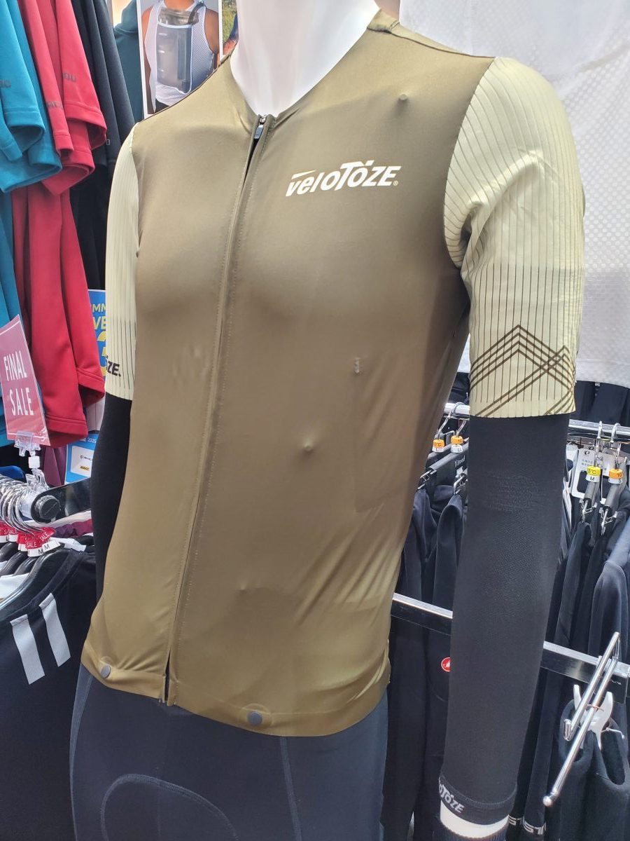 今回のPOPUPでもマネキンに着せてご案内していますが、近年ではジャージとビブショーツをスナップボタンで連結する「AeroLink™システム」など、革新的なデザインを採用したサイクルウェアも展開しています。これにより、バタつきのない快適な着心地となっています。
