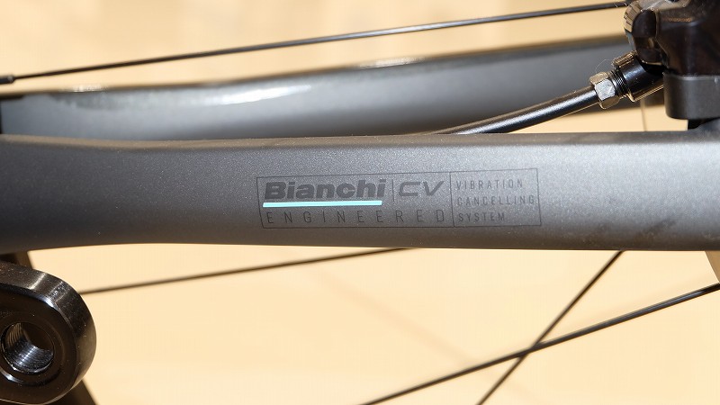 Infinito CV Disc最大の魅力は、ビアンキ独自の振動除去技術「Countervail(カウンターヴェイル)」、略してCVを採用したカーボンフレームにあります。特殊な振動吸収素材をカーボン層に埋め込むことで、走行中の細かい路面振動を最大80%カット。長距離ライドや荒れた路面でも疲労を大幅に軽減します。加えて、剛性感を犠牲にせずに高い反応性を保っているため、ロングライドからグランフォンド、さらにはヒルクライムまで幅広く対応できる万能性が魅力です。