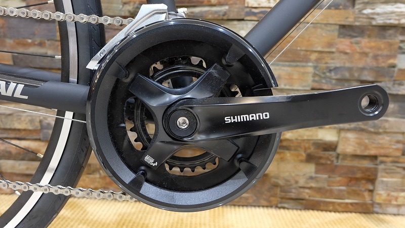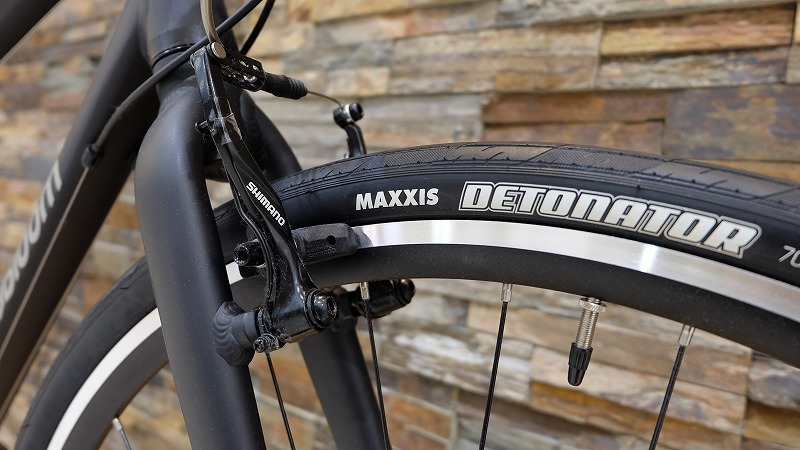 ブレーキはこちらも国内メーカーSHIMANOのブレーキ。同価格帯やそれより上の価格帯でもSHIMANOは使われていなかったりしますが、SHIMANOのパーツの良さはお墨付きなので安心して走行に集中することができます。