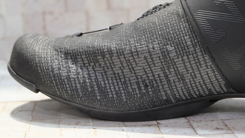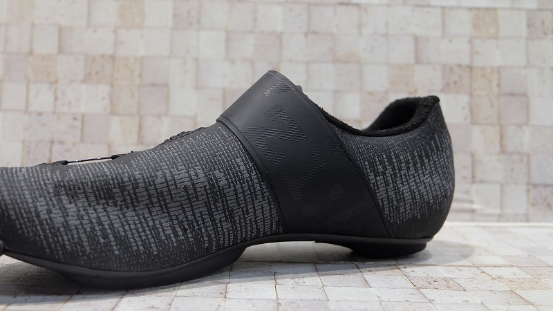 見た目ではニットと分かりにくいのですがこのシューズは熱溶融TPUとニットを組み合わせた構造になっています。そのため一般的なニットほどの強い伸縮性はありませんがニットならではの通気性や足に馴染むフィット感はしっかり感じられます。