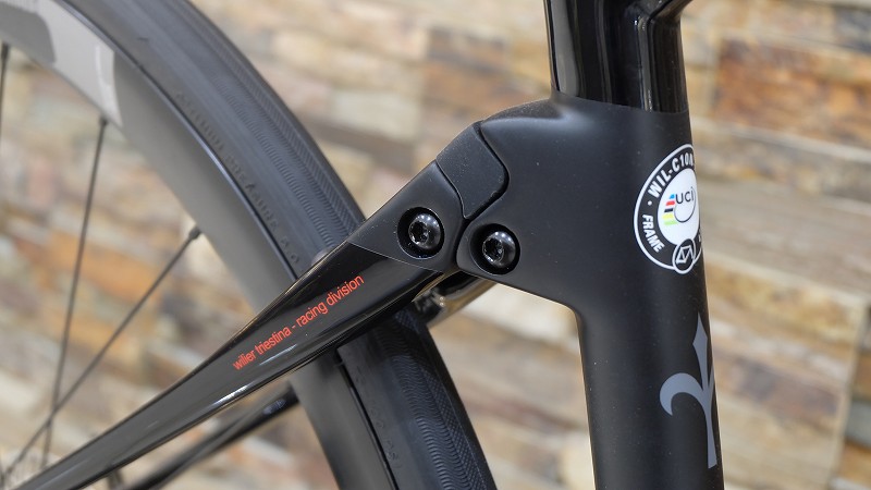Cento10 NDRの最大の特徴は、ウィリエール独自のサスペンションシステム「ACTIFLEX(アクティフレックス)」です。トップチューブとシートステーをつなぐ部分に小型のリンクとエラストマーを組み込み、シートステーがわずかにたわむことで振動を吸収します。この構造により、荒れた舗装や長距離ライドで発生する細かな衝撃を効果的に抑え、疲労を軽減。カーボンフレーム特有の高剛性を保ちつつ、しなやかな乗り味を実現しています。ペダリング時の剛性ロスを抑えながら快適性を高めており、「速く、かつ楽に走れる」ロードバイクとして高い完成度を誇ります。