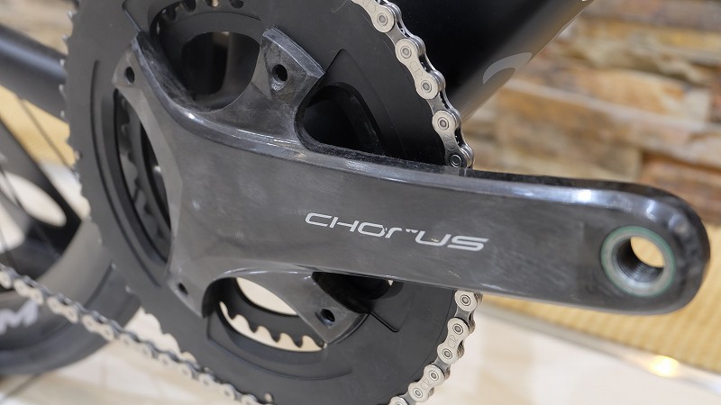 カンパニョーロのCHORUSは、上位グレードであるRecordやSuper Recordの技術を多く受け継ぎつつ、素材や細部の仕様を調整することで、コストパフォーマンスに優れたグループセットです。変速は滑らかで正確で、ヒルクライムから高速巡航、ロングライドまで幅広く対応します。カーボンクランクにより軽量かつ高剛性を実現し、ペダリング効率も高い設計です。特徴的なのはSTIレバーの形状で、人間工学に基づくエルゴグリップは手のひらの形にフィットし、手が小さい人でも無理なく握れ、疲れにくいのも魅力です。高性能と快適性を両立させた、実用的なハイエンドモデルと言えます。