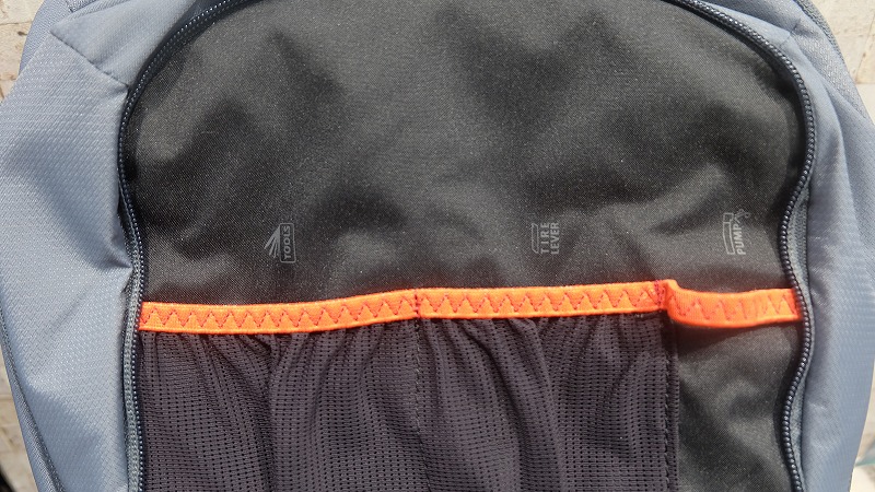ツール、タイヤレバー、ポンプとロゴ入りのサブポケットも仕分けるのに便利!また小物入れとは別に深いポケットもあるので、こちらにも結構荷物が入りそう!
