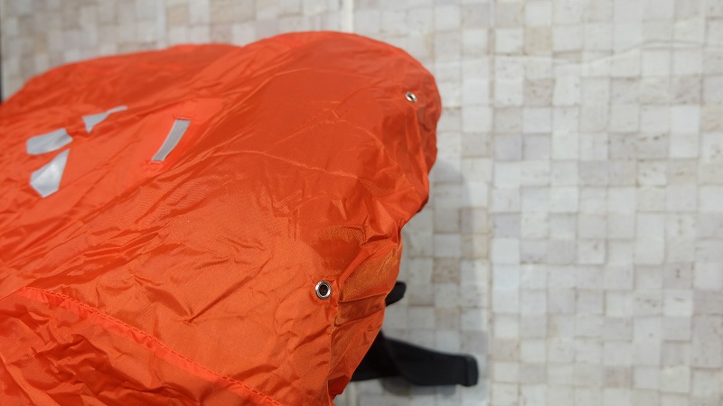 リュックの底部にレインカバーがしまわれているので、通り雨や午後だけ雨が降りそうなんていう時も安心。引っ張り出してガバっとかけるだけで装着できます!水抜き穴もついていて、もしカバー内に入ってしまっても自然と逃げていく構造です。