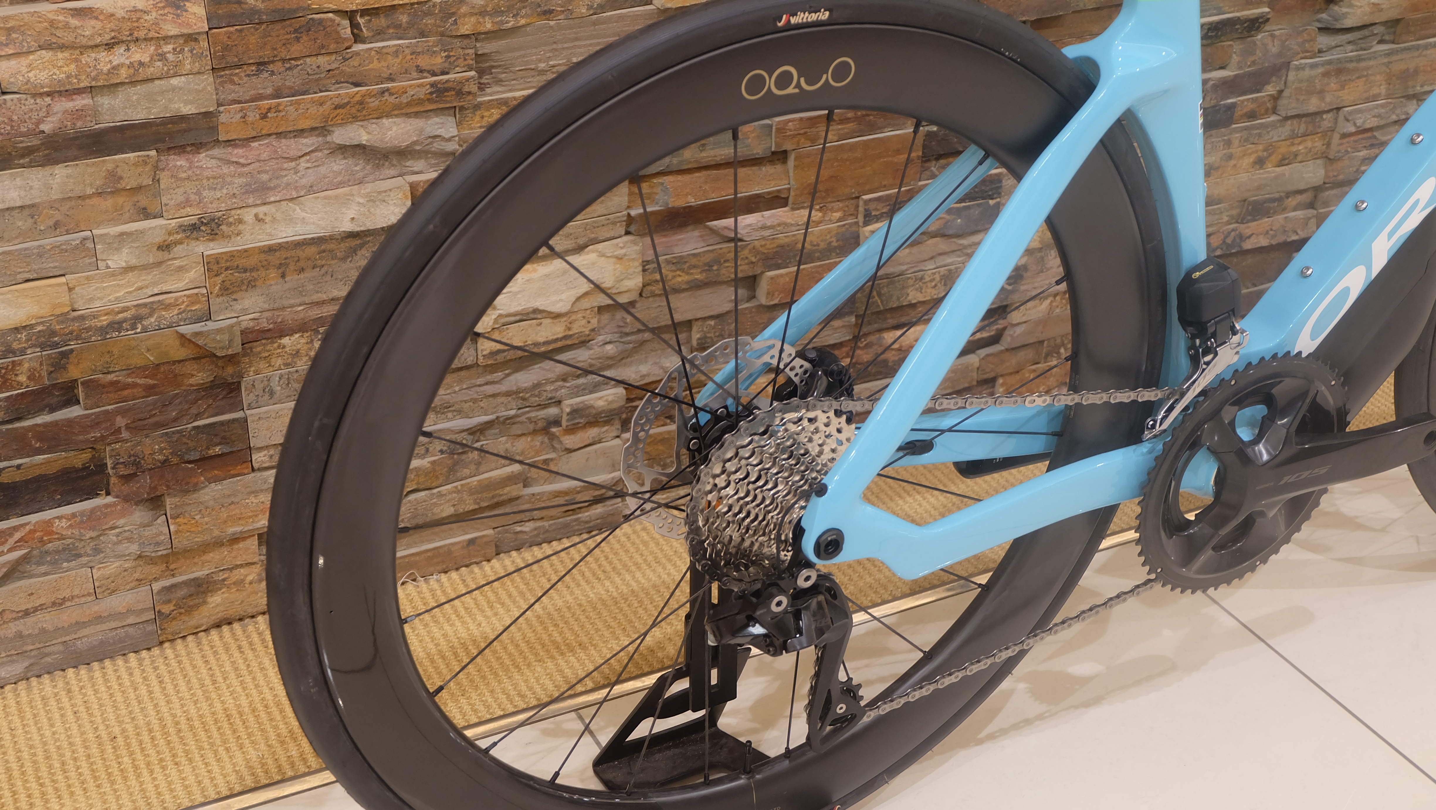 今回紹介するモデルは、ORBEAから販売されているエアロに特化したバイクになります。まるでTTバイクのような見た目のザ・エアロなフレームになってます。フレーム素材は最高峰のOMXカーボンを採用しており剛性が高く、踏んだ力を逃さずに推進力へ変えてくれます。