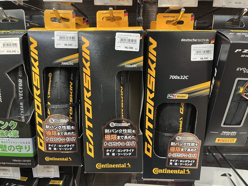 今回は特に街乗りに最適な32Cをご紹介しましたが、ゲータスキンはロードでも人気の25Cや、汎用性の高い28Cサイズも在庫しております。