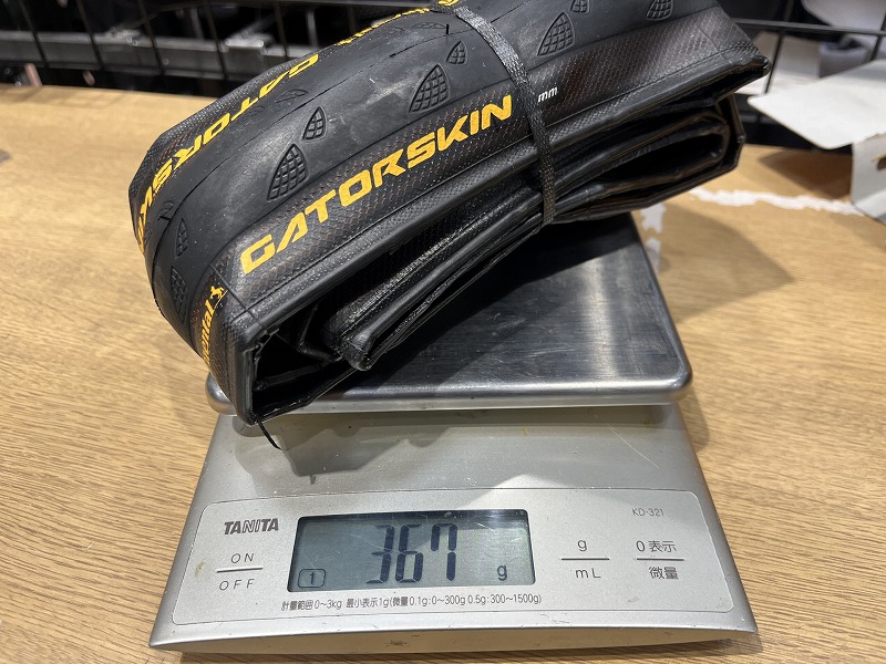 「耐久性が高いタイヤは重くて走りがもっさりするのでは?」という心配は、ゲータスキンには無用です。32Cという太めのサイズでありながら、ゲータスキンは32Cで実測重量367g(説明書込み)と耐久性に優れながらとても軽量です。