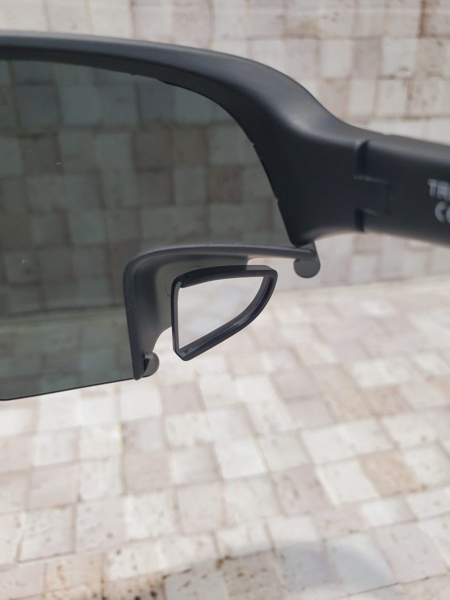 ミラーは走行中も視界の中で邪魔にならない位置に配置されており、通常のサングラスとしての使い勝手も損ないません。