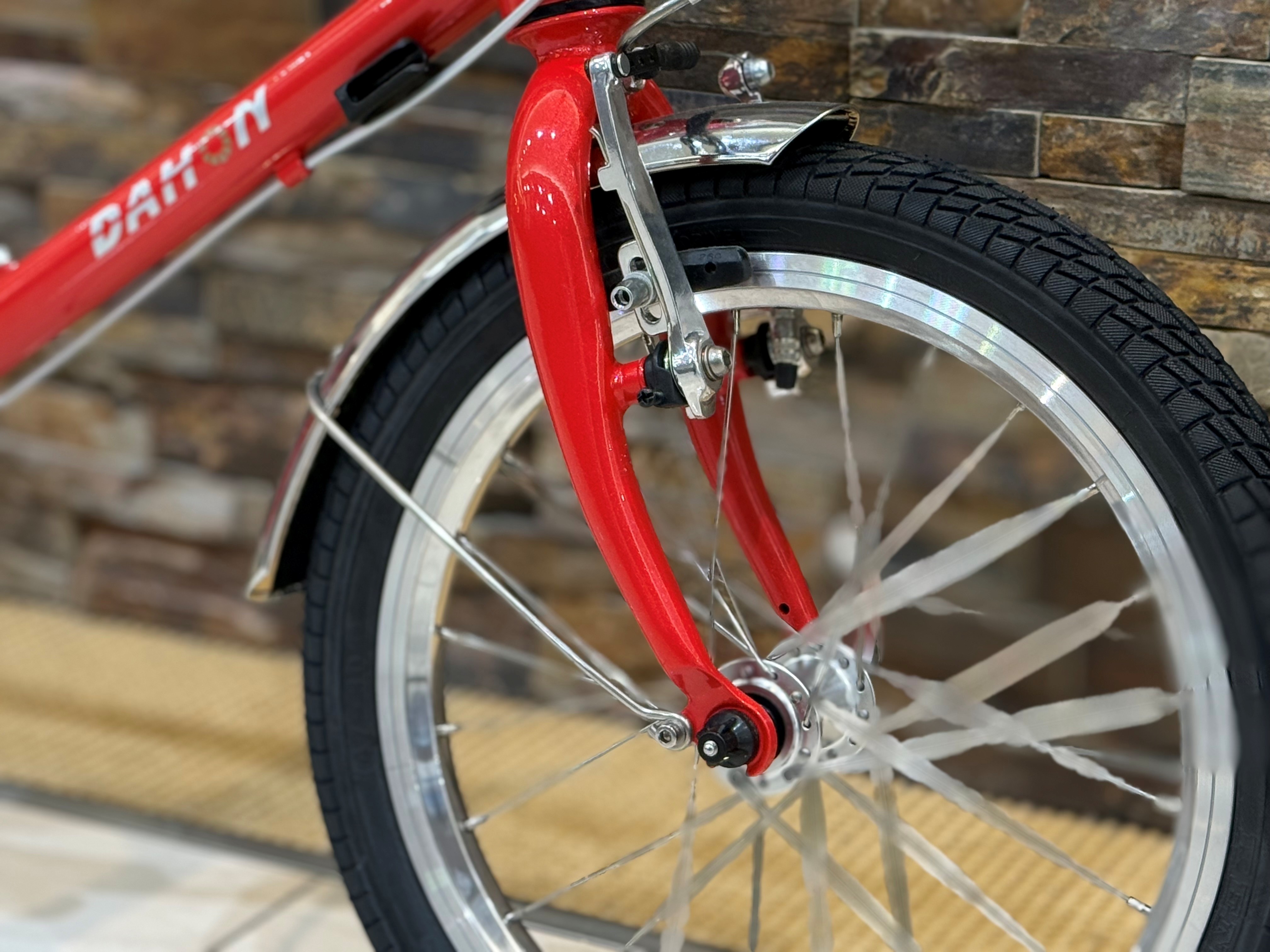 DAHON「D-ZERO」は、昔ながらのダホンらしさを残したクラシカルなミニベロです。フレームこそ折りたたまないものの、ハンドルだけを畳めるセミフォールディング仕様で、玄関や室内でも場所を取らずに保管できるのが特徴になっております。16インチらしい軽快な加速感があり、街中をサッと走る日常使いにちょうどいい走り心地です。標準でフェンダーやスタンドが付いているので、通勤・通学や買い物など、普段の移動手段としてすぐに使えるのも嬉しいポイント。スピードを求めるタイプではありませんが、気軽で扱いやすく、デザインもどこかレトロ。普段の暮らしに自然に溶け込む、“使いやすい相棒”のような一台です。この度25年モデルではありますがセール価格によってご案内中です。是非ご検討下さい!!