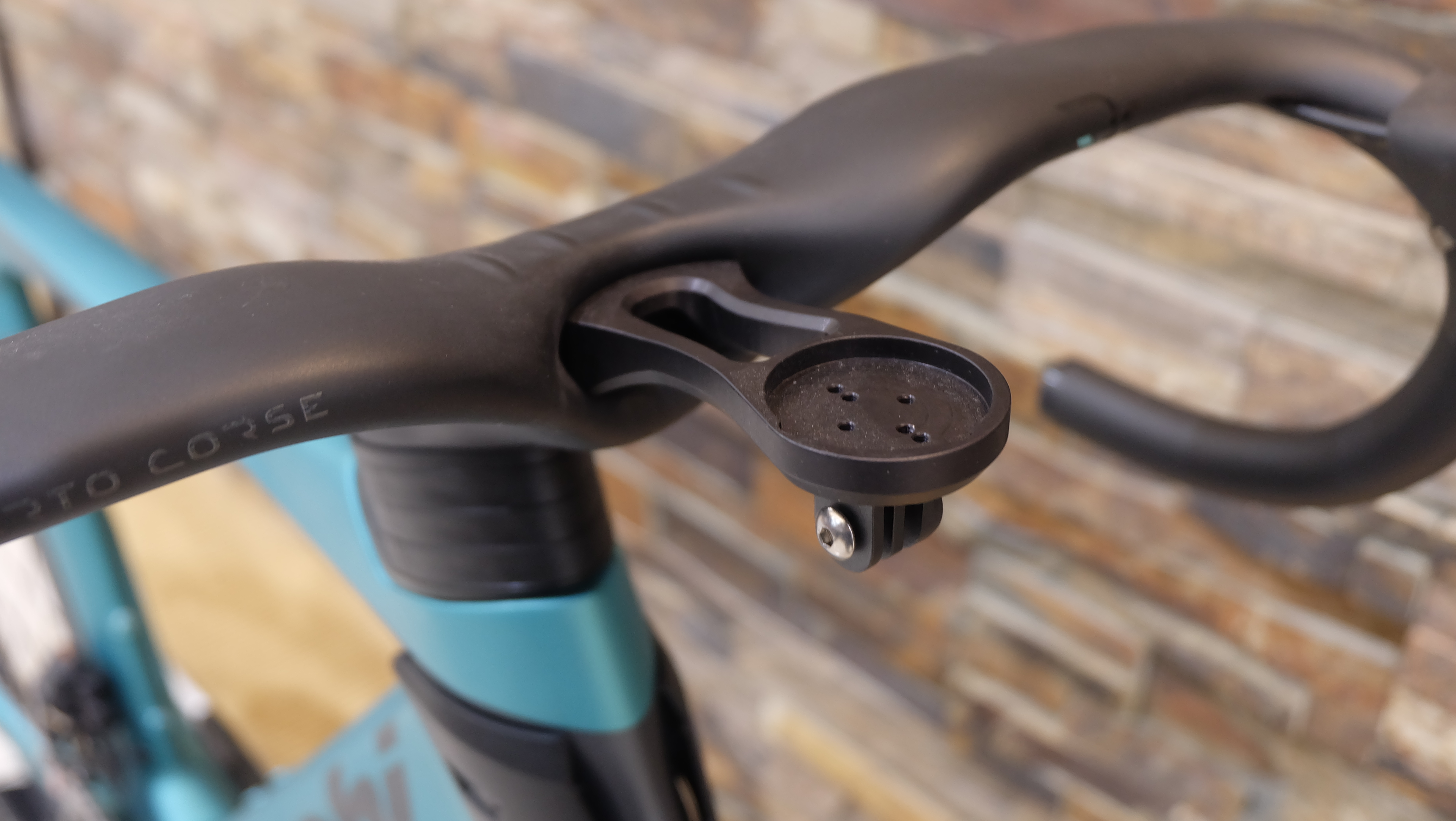 「どこにサイコンとライト取り付けるの?」と独特なハンドルを見て思うかもしれません。安心してください、Wahoo、Garminに対応したサイコンマウントが付属します。下にライトも取り付けられます。