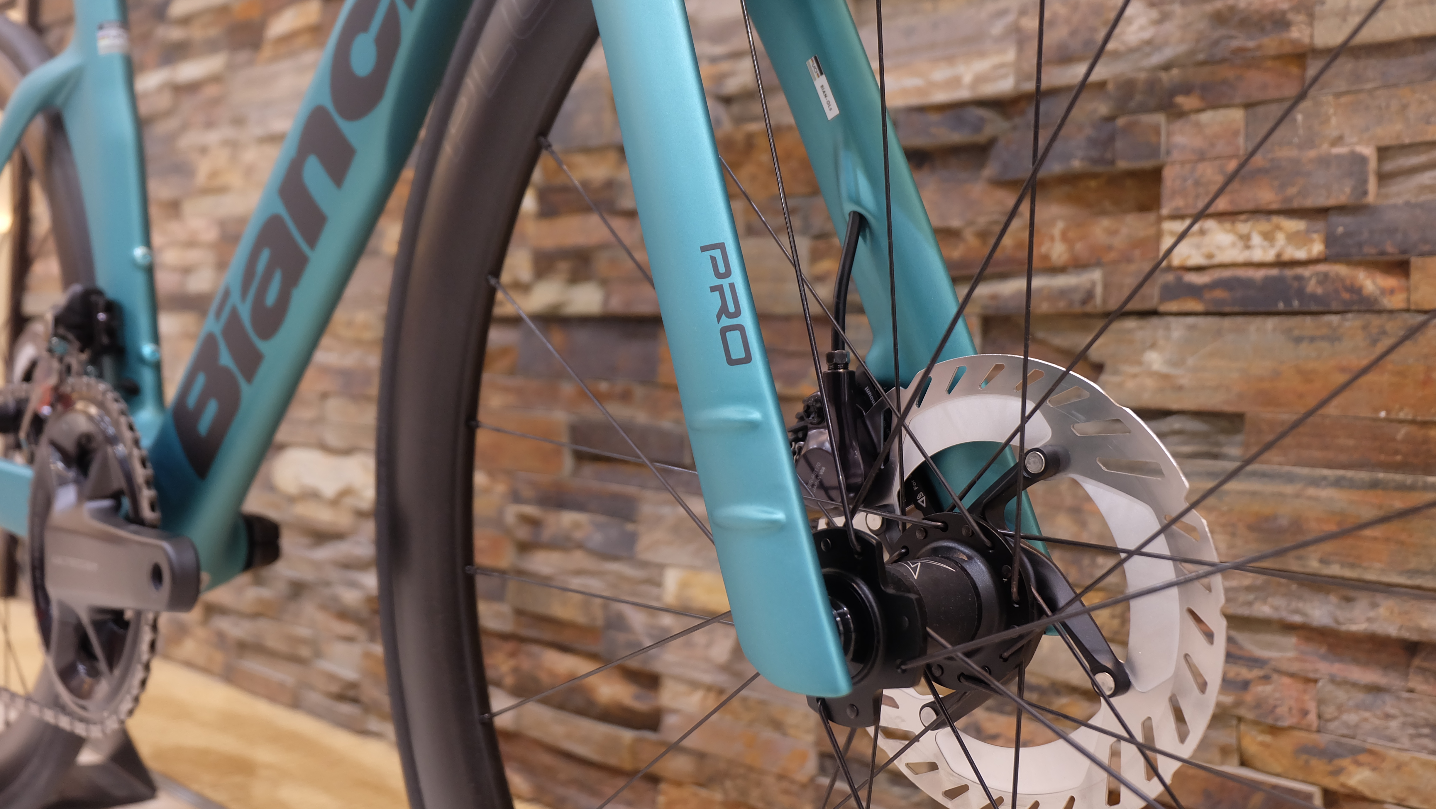最上位モデルのOLTRE RC と同じフレームフレームモールドで現行モデルのOLTREシリーズではORTORE PROのみカウンターヴェイルが搭載されています。カウンターヴェイルはBianchiならではの素材であり、独自のカーボン繊維構造と粘弾性を持ち、フレームとフォークの剛性と強度を向上させながらも最大80%の振動除去してくれます。レースもガチで走りたいけどロングライドも楽しみたいと思う場合いは上位モデルより乗り心地がマイルドでおすすめです。道が多少悪くても「なんか走りやすいなー」と思えるはずです!