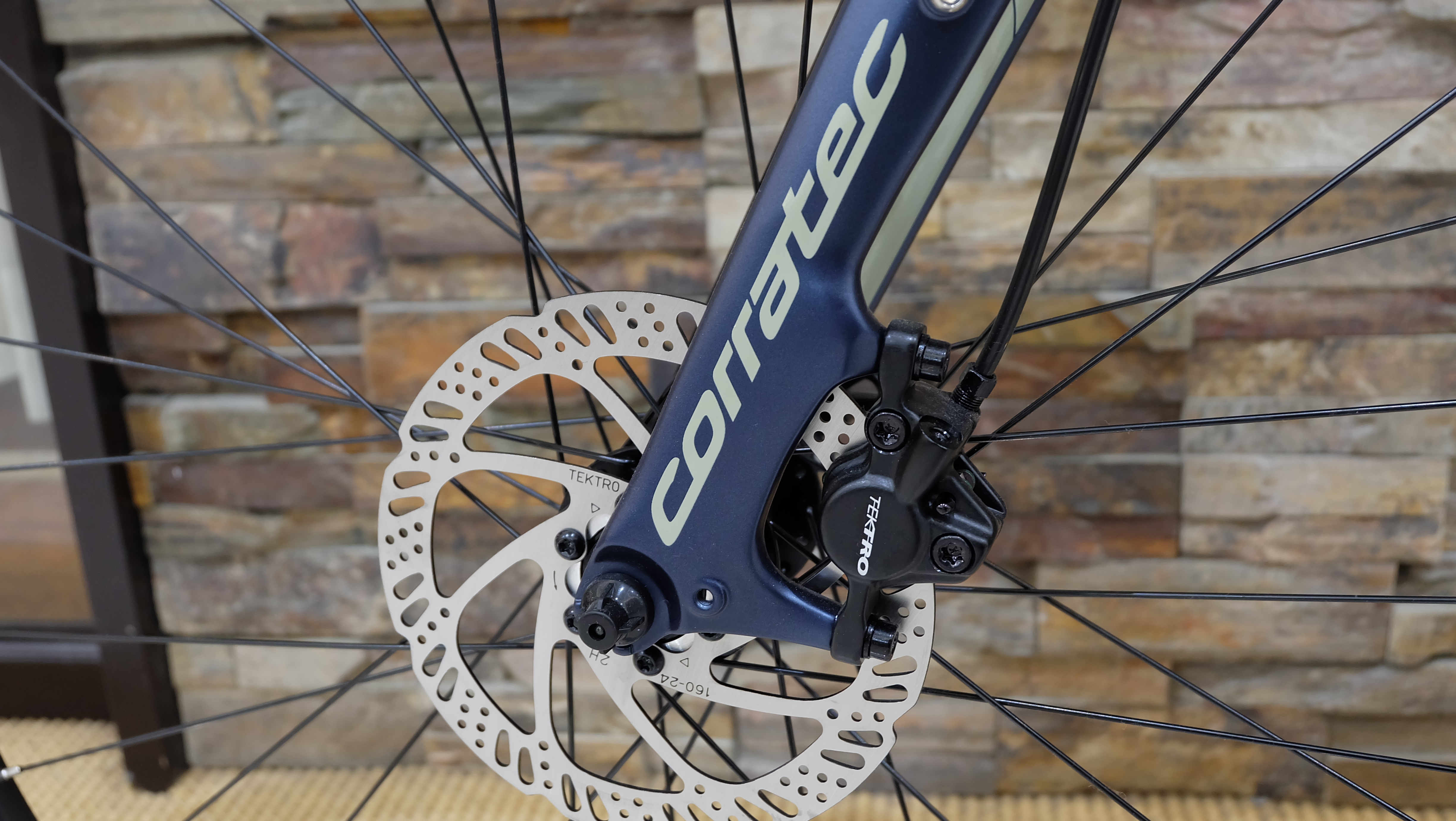 TEKTROの油圧式ディスクブレーキが使われています。制動力は高く雨の日でもしっかりと止まってくれます。また、ブレーキレバーの引きが軽く握力の弱い女性の方でも疲れにくくストレスを感じにくいです。
