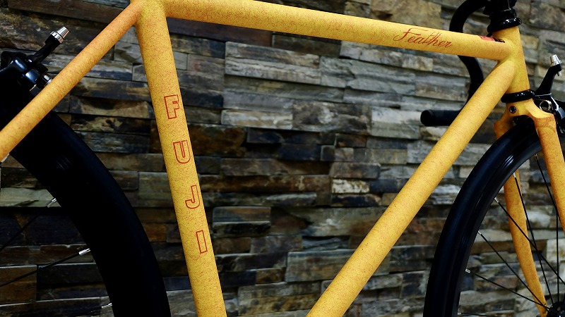 クロモリのピストバイクと言えば、ダイヤモンドフレームで美しいクラシックな外観、FUJI FEATHERはバッチし伝統的なデザインを感じることができます。機能としてもクロモリのバテッドチューブが使われており強度と軽量も考えられたフレームになっています。カラーリングはモダンで伝統的なデザインのなかにも新しさも感じつつ実用的な1台になっております。
