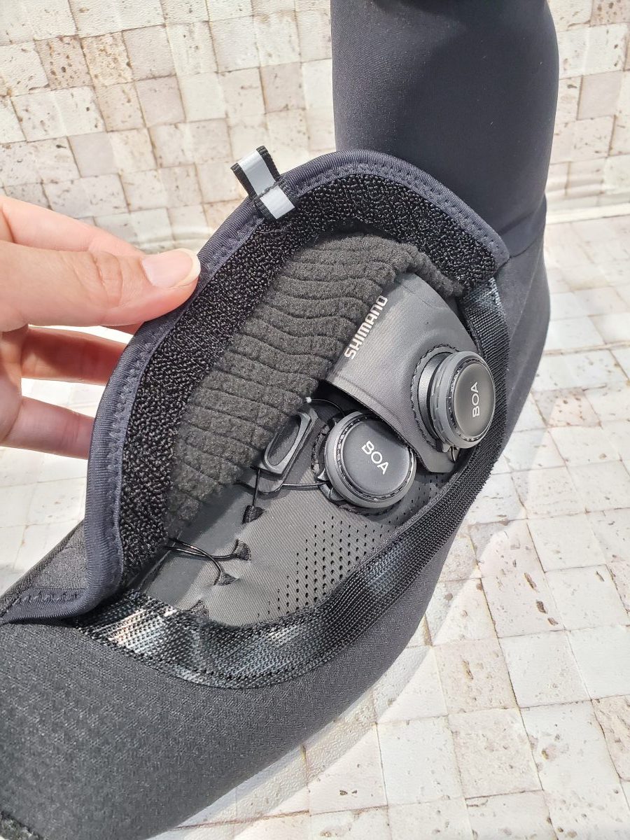 このシューズカバーの大きな特徴といえば、シューズのダイヤルをカバーをつけたまま操作できる点です。
