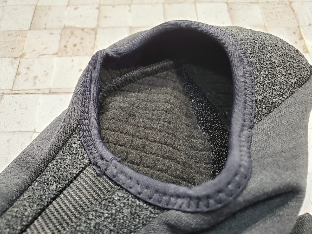 裏地は起毛仕様で、足全体を包み込むような暖かさを保ちつつ、ペダリングの動きを妨げない柔軟性を持っています。