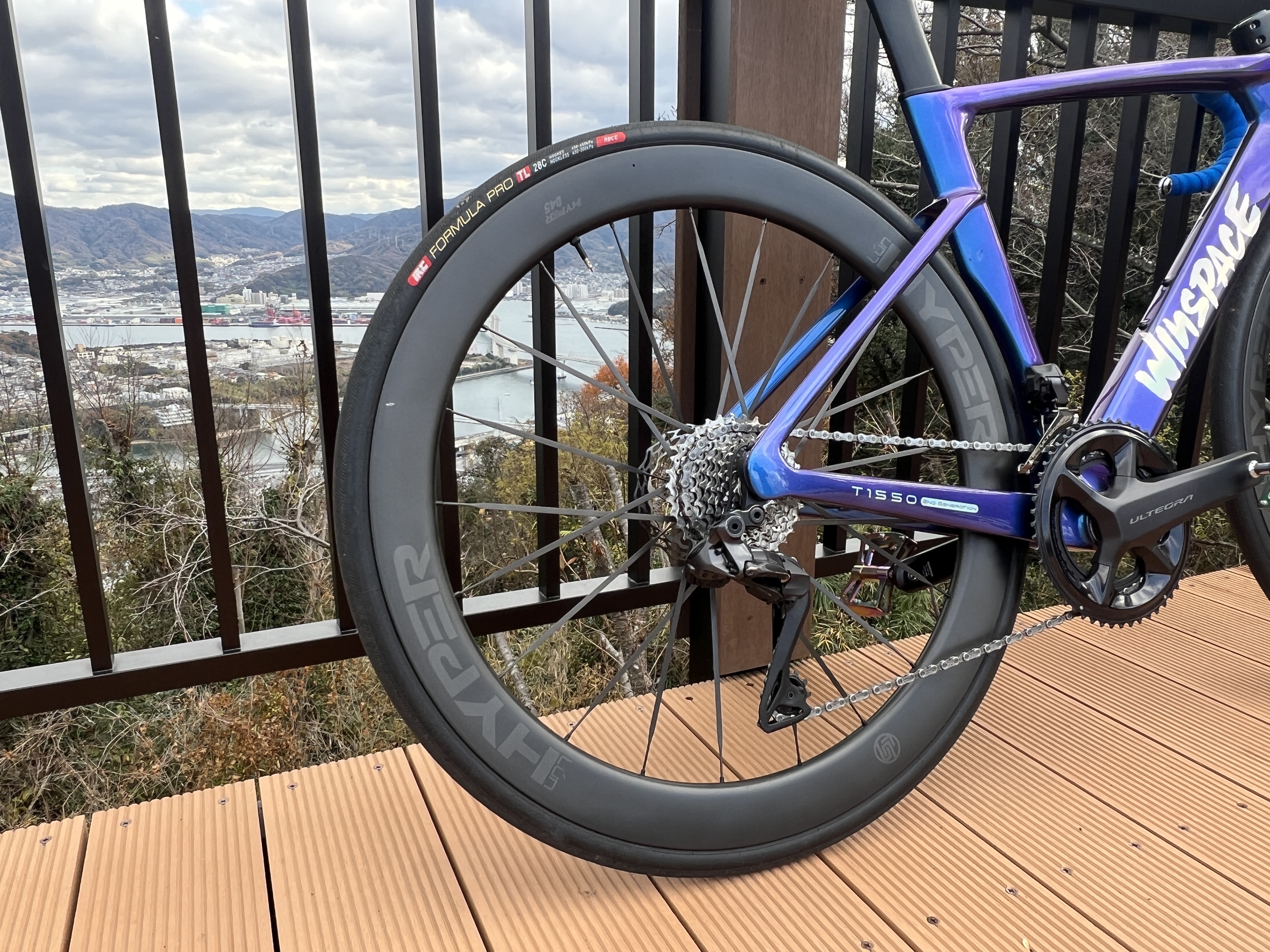 T1550では下りと平坦で試しました。SLC5と比べて平坦がより楽だということに気づきました。SLC5も平坦が楽だと感じましたが、そのあとT1550に乗ると平坦の効果を感じやすかったです。またこちらには「LUNHYPER 3 D45」のカーボンホイールでしたが、やはり相性が良い印象でした。ですが、SLC5と比べると地面からの突き上げ感が強く、乗り心地はSLC5の方が良かったですね。あともう一つ、バイクを振った際なのですが私はT1550の方が好みでした。なぜかというと、T1550は自分が思った通りの範囲で振れますがSLC5は振りが軽いが故に、コントロールするのが難しく感じました。登りは良いなと思いましたが、平坦やスプリントする際には扱いが難しそうです。