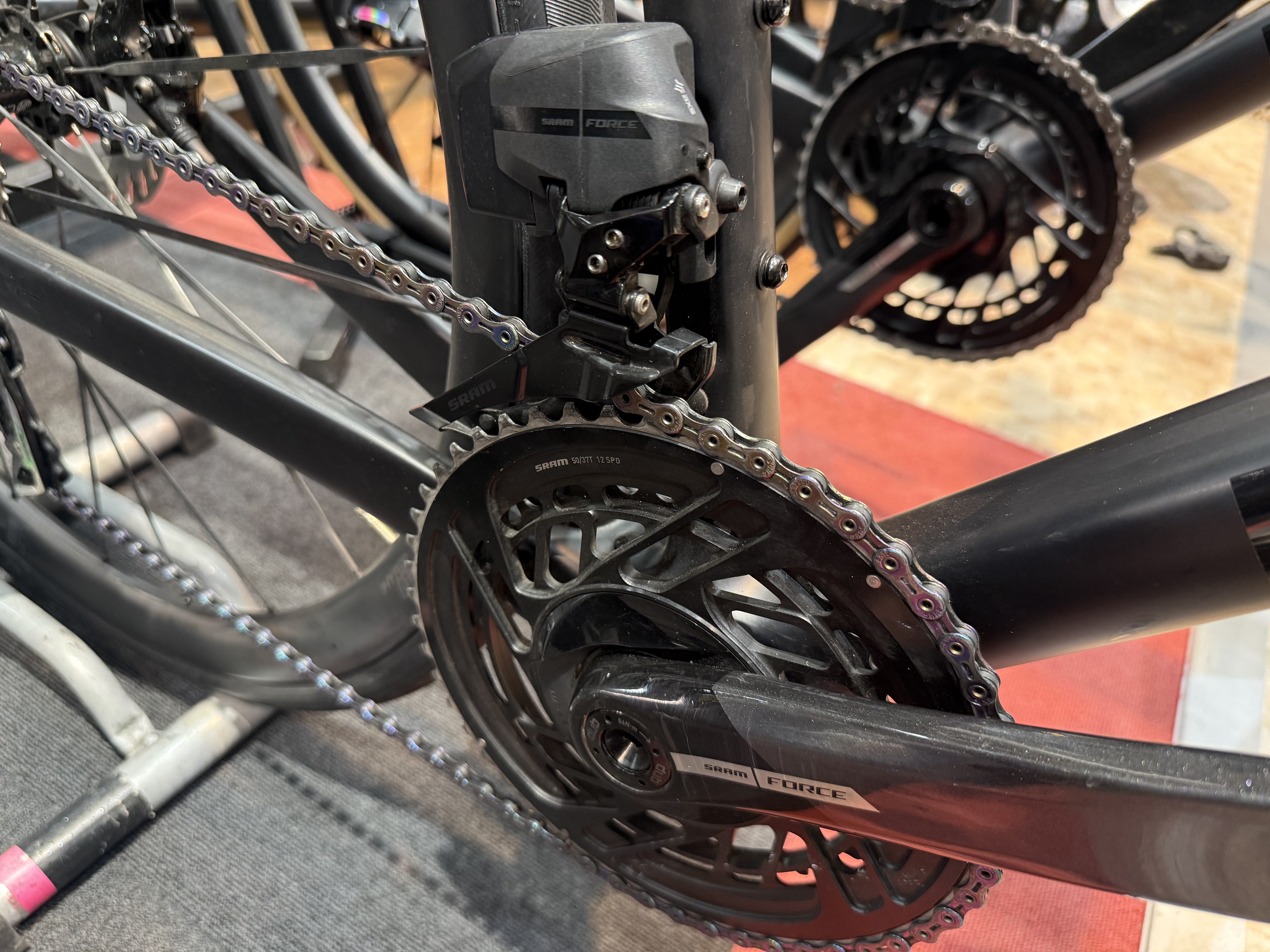 その他部品も拘られておりチェーンなども軽量を意識したSUMCがついていたりしています。なんとその重量、デュラエースに匹敵するだとか…それで完成車100万以下なのでびっくりしますね。