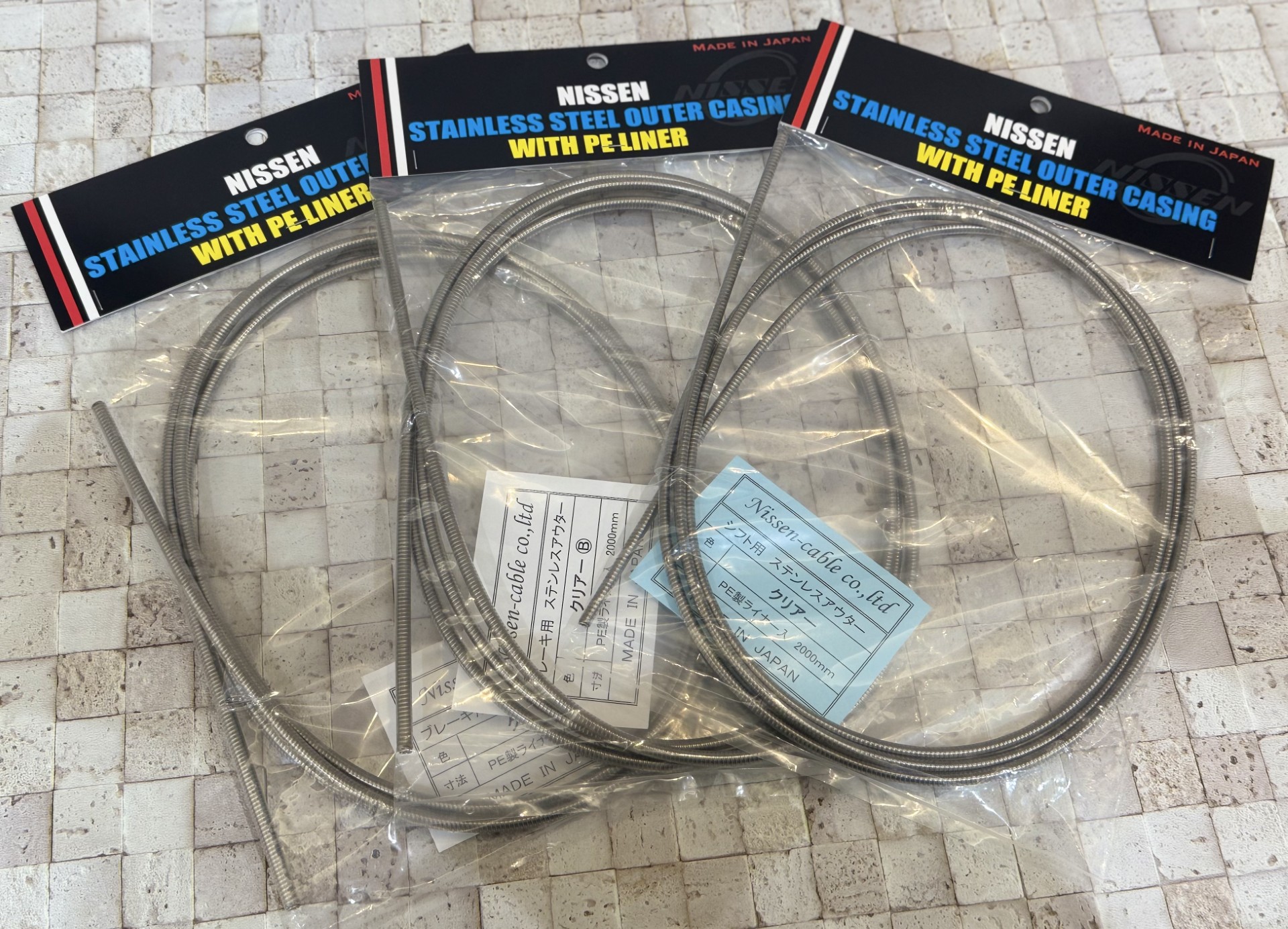 なぜ”シマノではなく日泉を選んだか”それは乗る自転車によって考え方が変わってきます。今回私がカスタムする自転車は折り畳み自転車です。折りたたみ自転車は、普通のバイクに比べてケーブルの曲がりが多く、折りたたむたびにアウターやインナーにストレスがかかりやすい構造になります。そのため、変速やブレーキの操作感が重くなったり、戻りが悪くなったりと、小さなストレスが積み重なる傾向にあります。そんな中で人気なのが”日泉ケーブル”。摩擦の少ないインナーとしなやかなアウターのおかげで、レバーの引きが軽く、折りたたみ特有の取り回しでも性能を維持しやすいのが特徴です。シマノ純正ケーブルも互換性や価格的にも安価で優秀ですが、折りたたみ自転車の「ケーブルルート」を考えると、日泉の引きの軽さや滑らかさは相性がとても良いです。その為私は日泉ケーブルを選択しました。