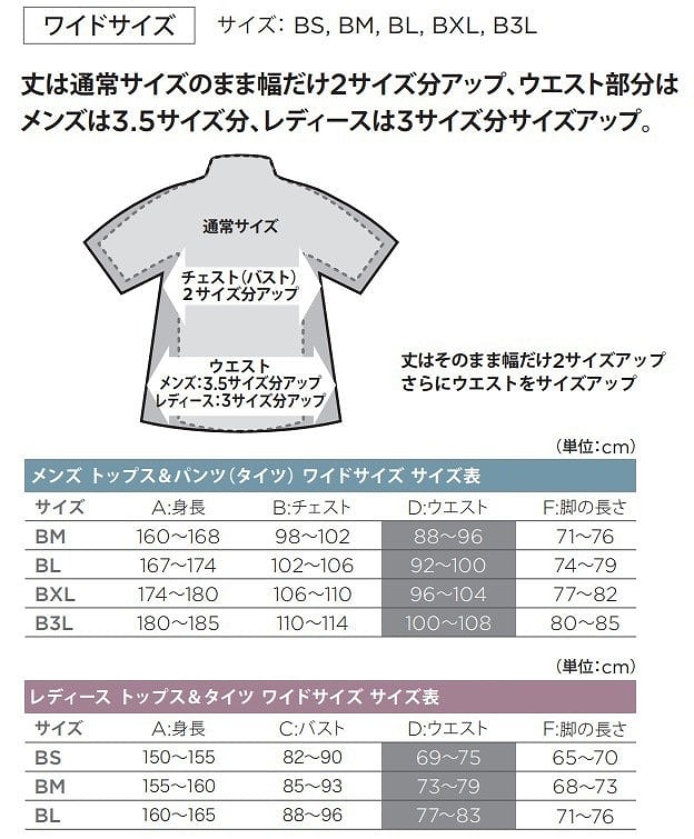 着丈はそのままというのがワイドサイズのポイント。サイズを上げると、丈や袖が余ってしまうのはあるあるですよね。特に、冬はインナーから厚手のものを重ね着していくので、通常のサイズでは動きにくかったり、モノによっては入らなかったりします。サイクルジャージと言えど、着用感に余裕があれば、応用が効いて便利ですよね。