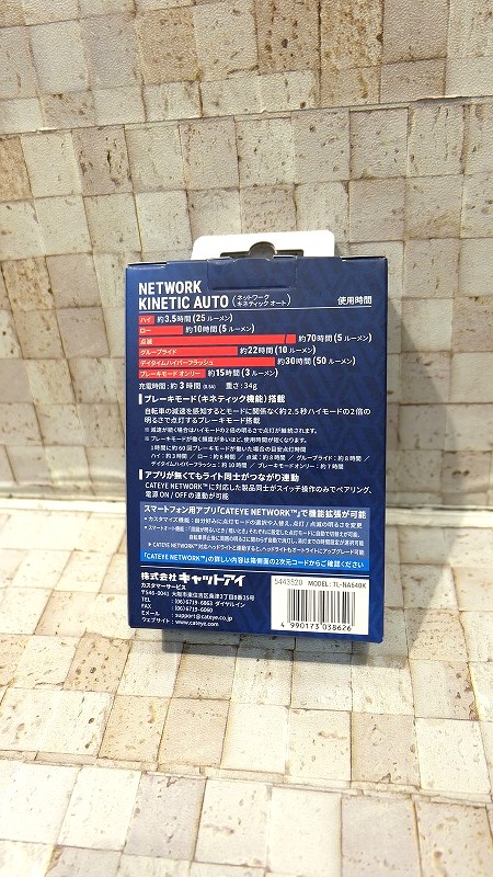 キネティックオートにはブレーキモードという機能が搭載されていますが、こちらは減速を感知するもの。アプリで拡張できる機能は、停止した際に自動的にライトをオフにするものです。つまり、信号停止やコンビニ補給等、降車する時にいちいちスイッチを操作しなくても、勝手に消える。自動停止機能が付与されます!スゴイ!
