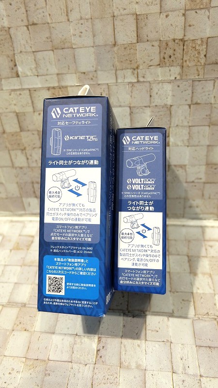 キャットアイから新発売のネットワークシリーズ。アプリがなくとも前後ライトが連動し、ペアリングすれば片方のスイッチで点灯消灯が可能になります!トンネルや状況に応じて、片側のスイッチで操作できるのは画期的です!素晴らしい!