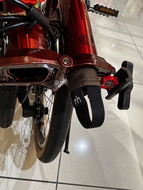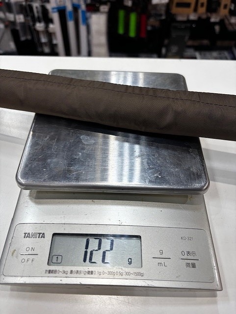 この様な感じでブロンプトンのフレームにスッポリ収めれます。生地はナイロンで出来ていて、重量は実測ですが122gとかなりの軽量。