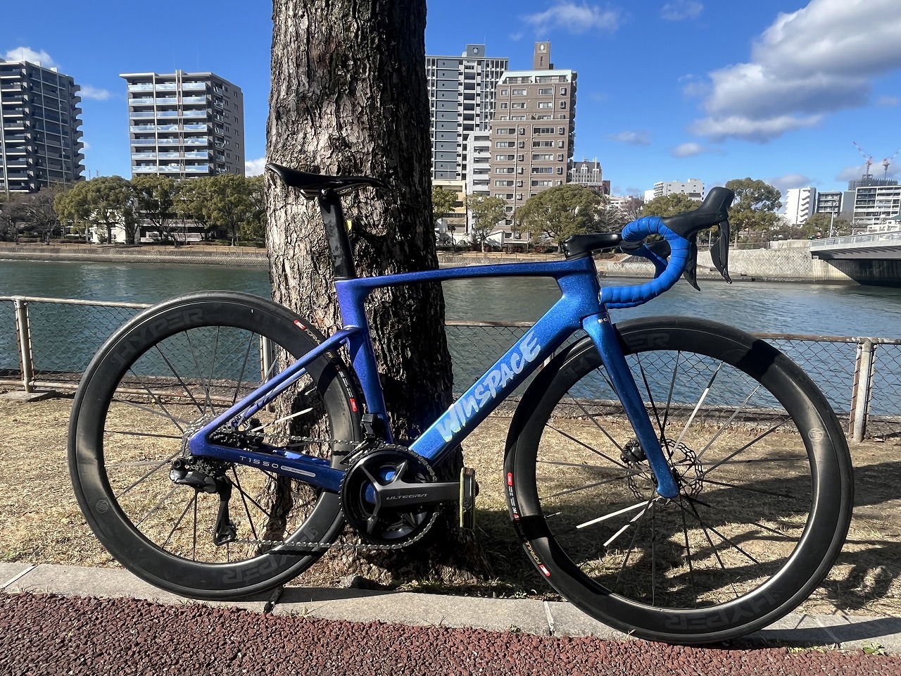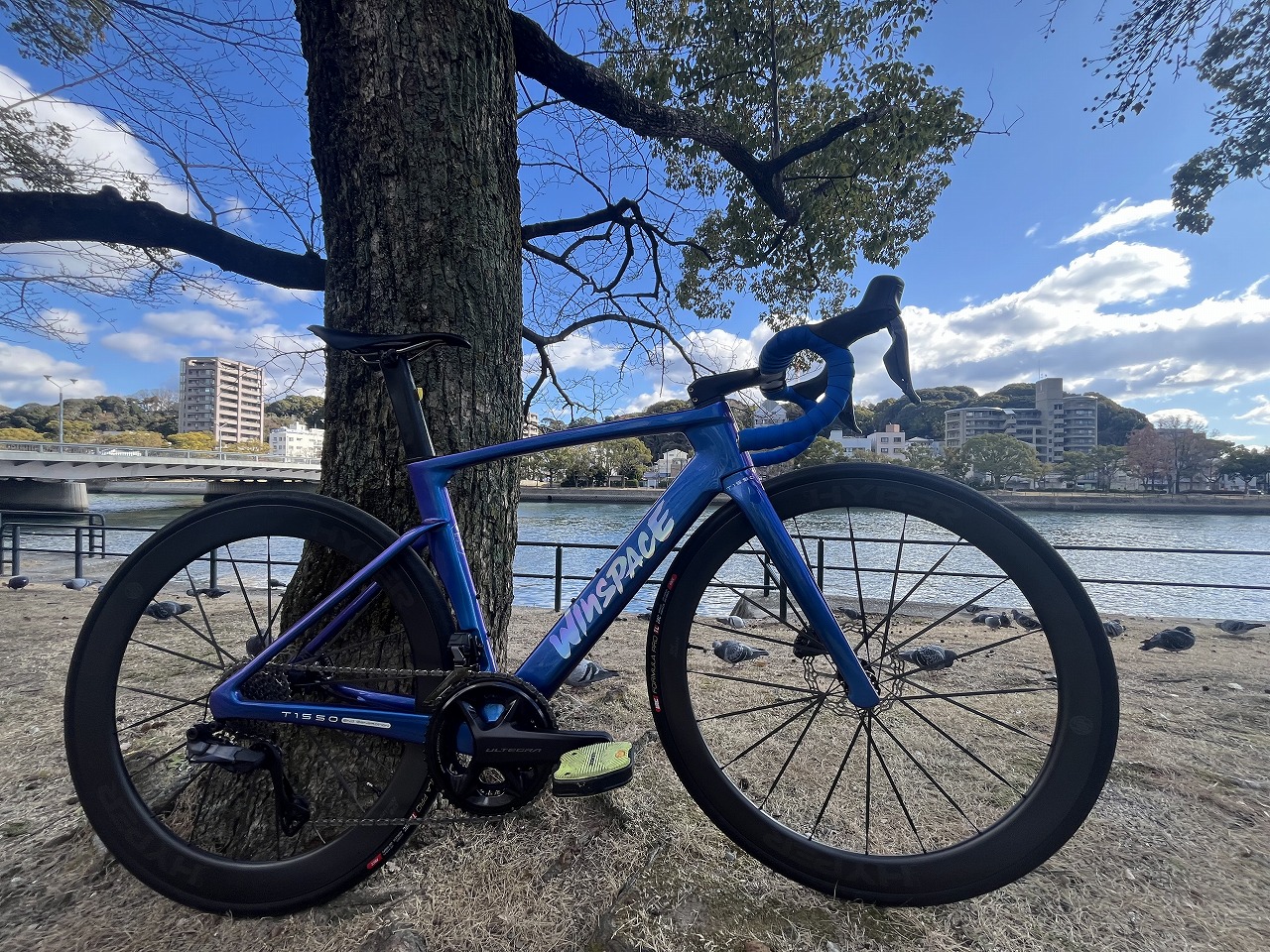WINSPACE T1550 GEN2は明確なエアロチューブ形状のレーシングバイクですが、実測値ベースでフレーム重量が約830g前後と軽量に仕上がっており、実走でもそれが良い方向に効いています。