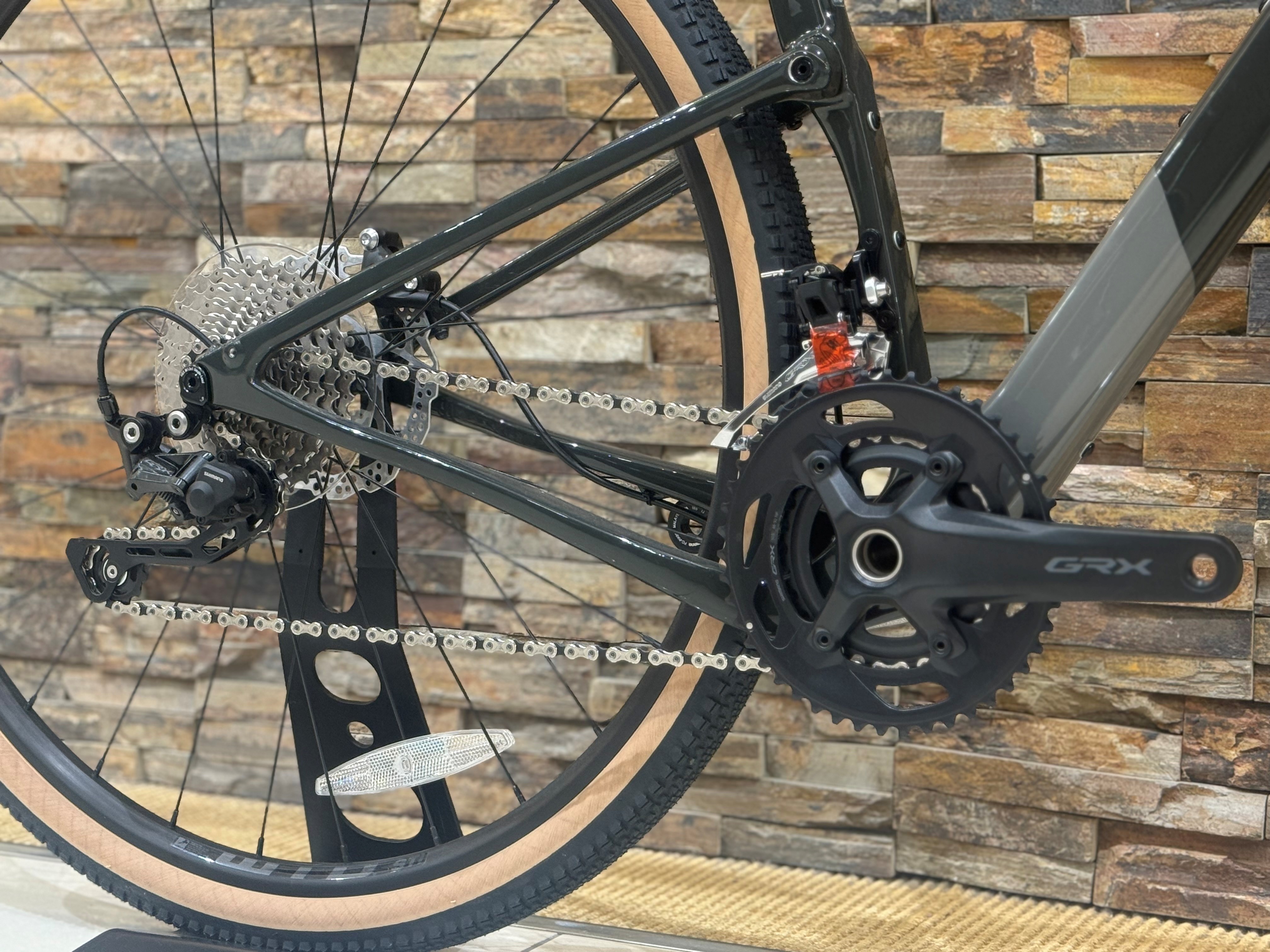 メインコンポーネントには、グラベル専用コンポーネントのGRX400を搭載しています。ロード用コンポでいうとティアグラ相当のグレードになるので、これからグラベルを始めたい方はもちろん、経験者の方にも扱いやすい構成です。