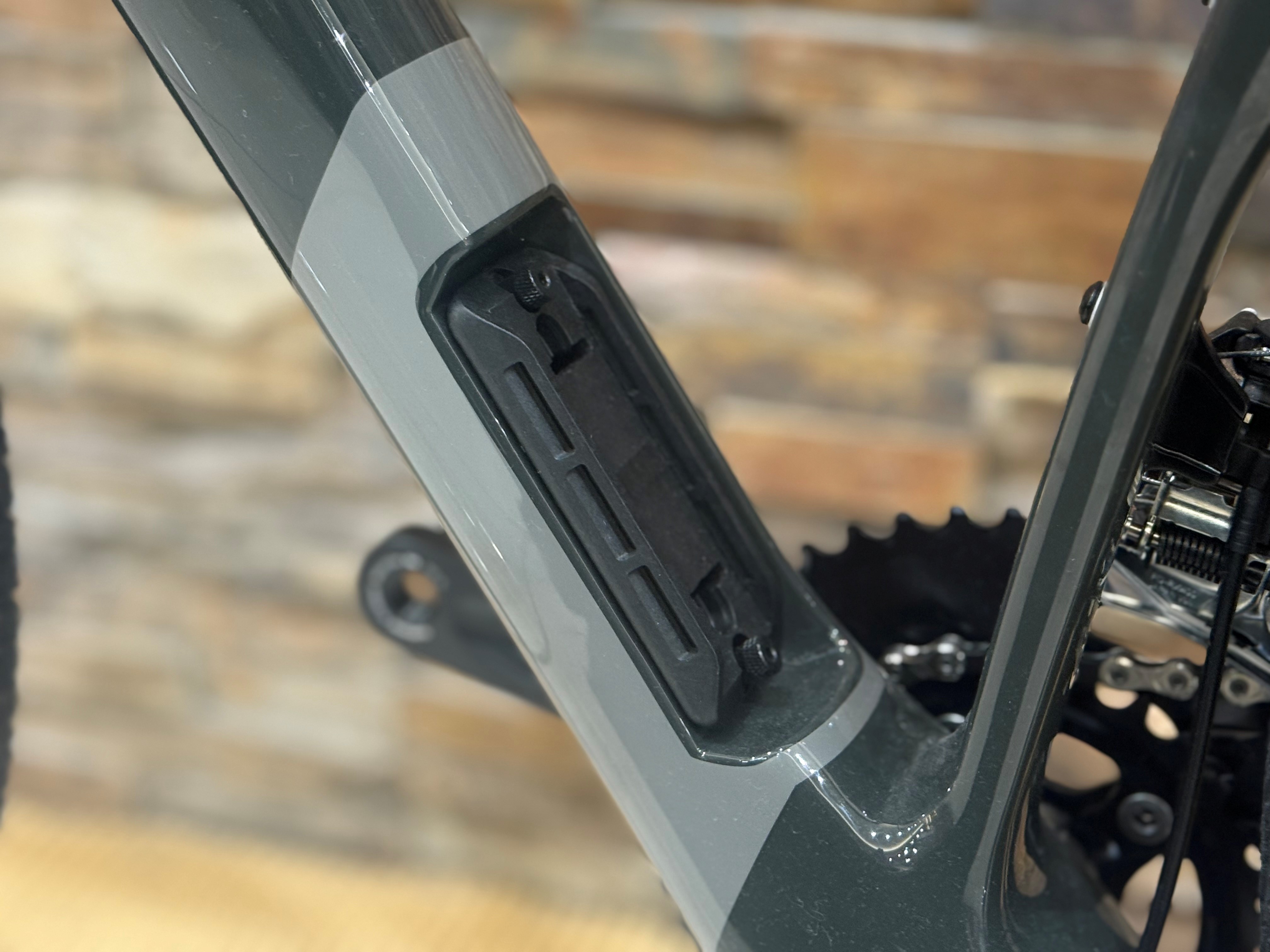 未舗装路のように路面変化が大きい場所でも安定した変速とブレーキ性能を発揮できるよう、チェーンラインを少し外側に設計し、タイヤクリアランスもしっかり確保されています。そのおかげで、振動の多いグラベル路面でもチェーンが外れにくく、安心して走ることができます。