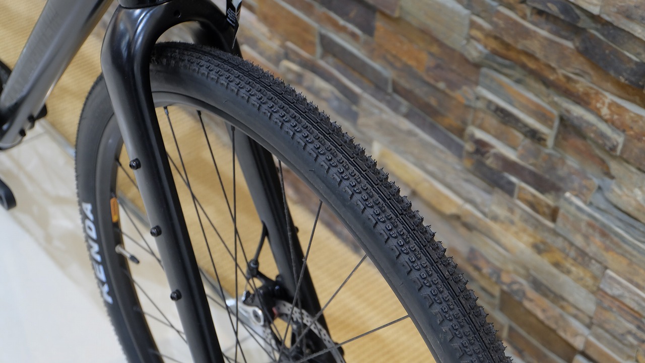 グラベルロードは整備された道を走るのはもちろん、オフロードでもガンガン走ることができます!グラベルロードはロードバイクとは違い、タイヤクリアランスが広く設計されているので、太いタイヤを取り付けることができます。標準装備では700×40cがついており、最大50cまでのタイヤを履くことができます。太いタイヤは、悪路での安定性・乗り心地などが向上するのでオフロードでの走行に適しており、安定した走りが可能です!ロードバイクでは走れない道も走ることができ、より自由なサイクリングができる魅力的な1台です!
