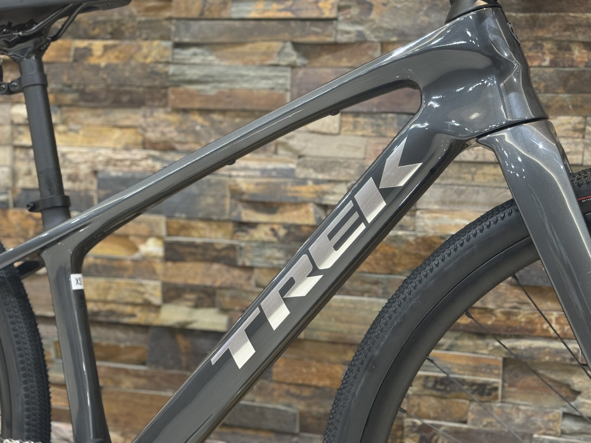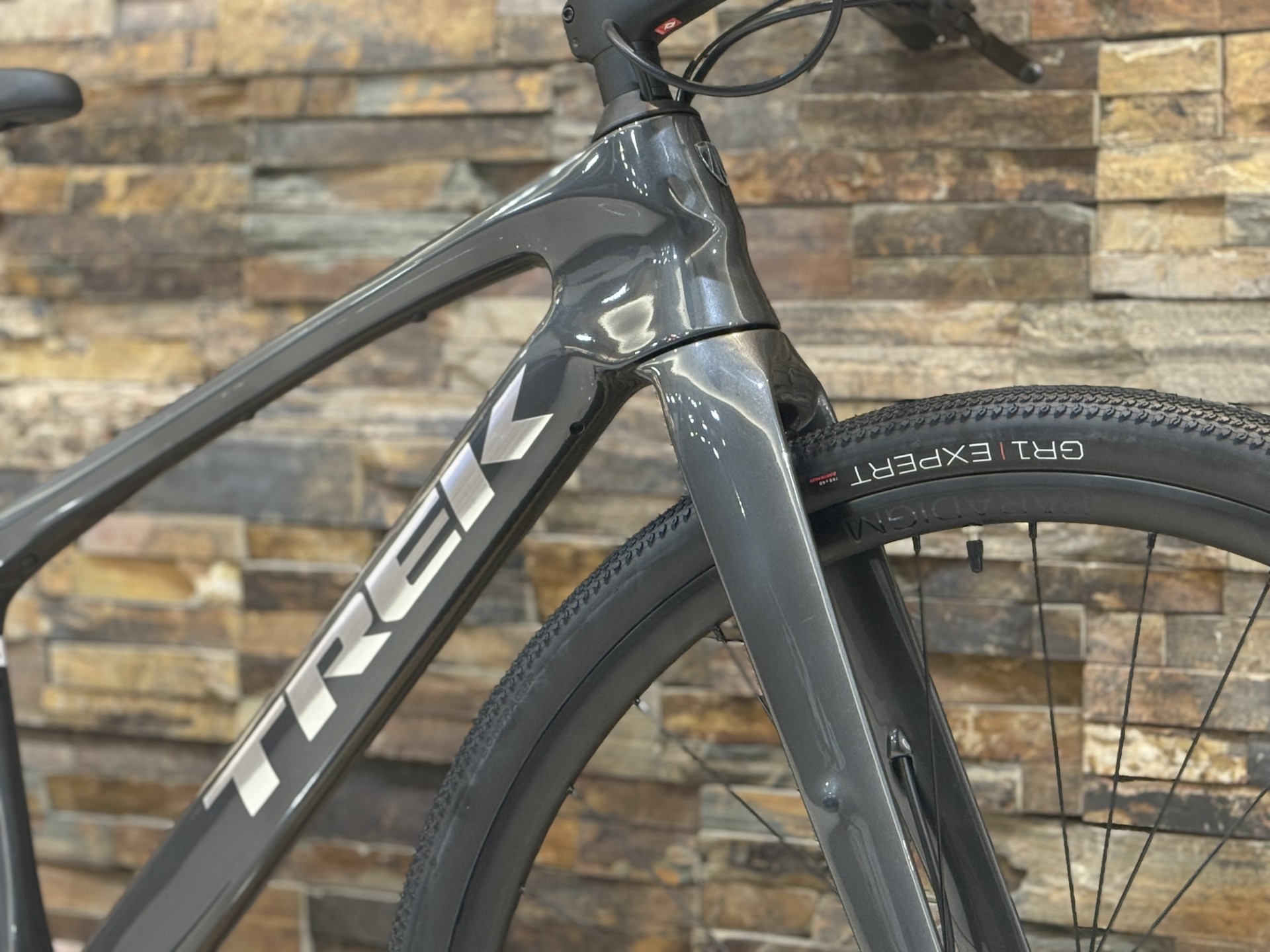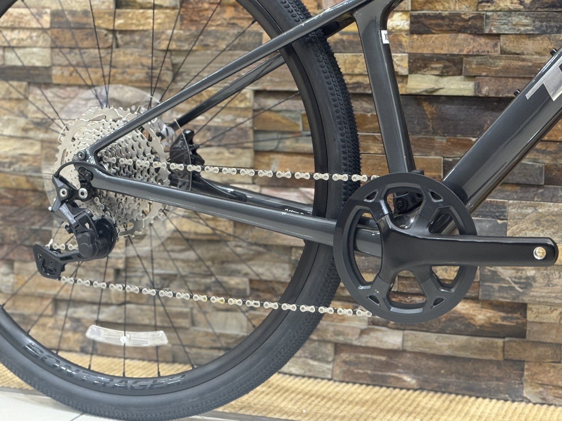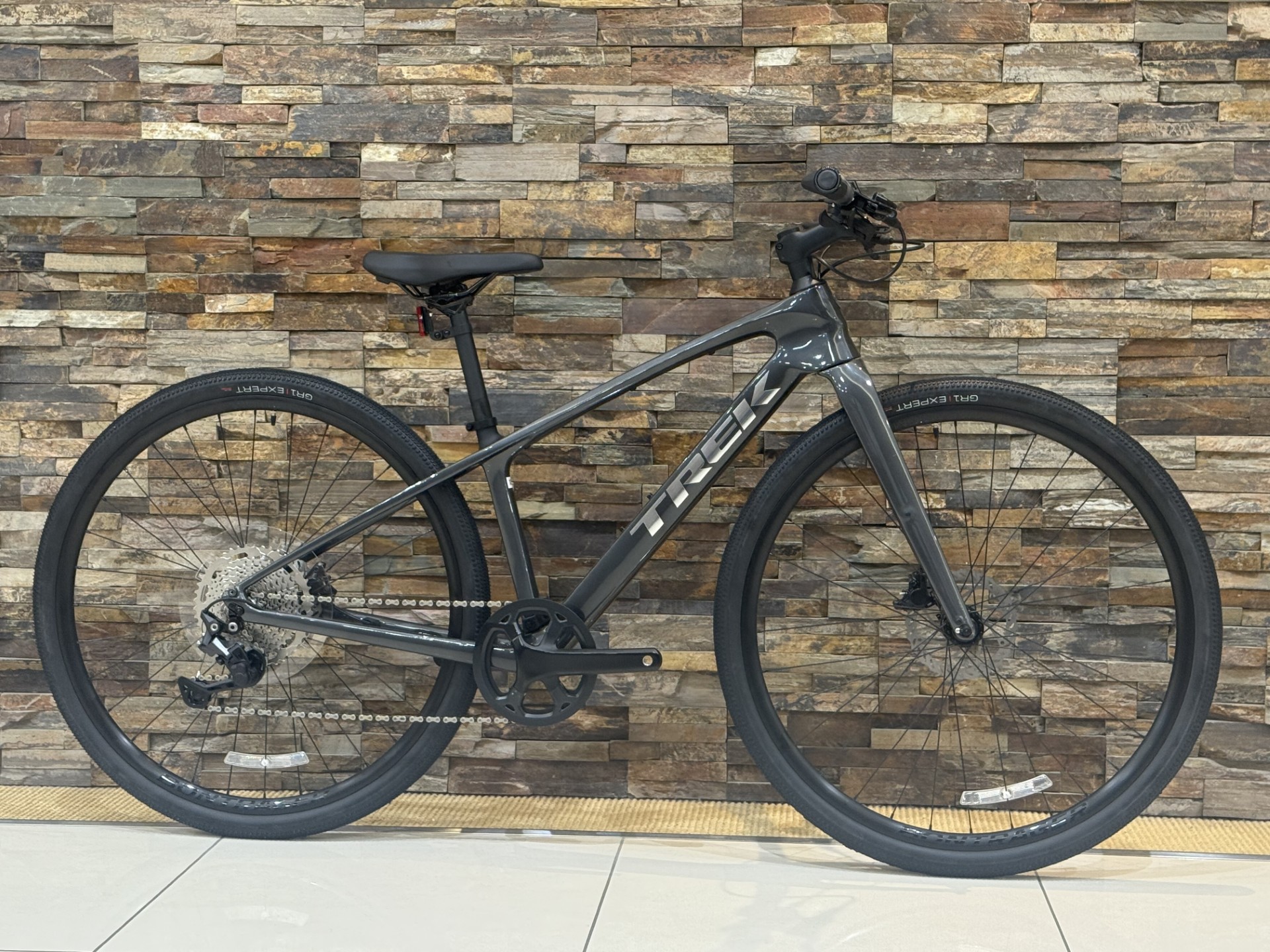 このモデル最大の特徴は、なんといってもカーボンフレーム。TREK独自の400シリーズOCLVカーボンを採用し、アルミモデルと比べて圧倒的な軽量性を実現しています。加えて、路面から伝わる微細な振動をしなやかに吸収してくれるため、長時間走行しても疲労が溜まりにくく、快適なライドを楽しめるのが大きな魅力です。フラットバーならではの扱いやすさに、ロードバイクのような鋭い反応性が加わり、スポーティさと快適性を高次元で両立しています。