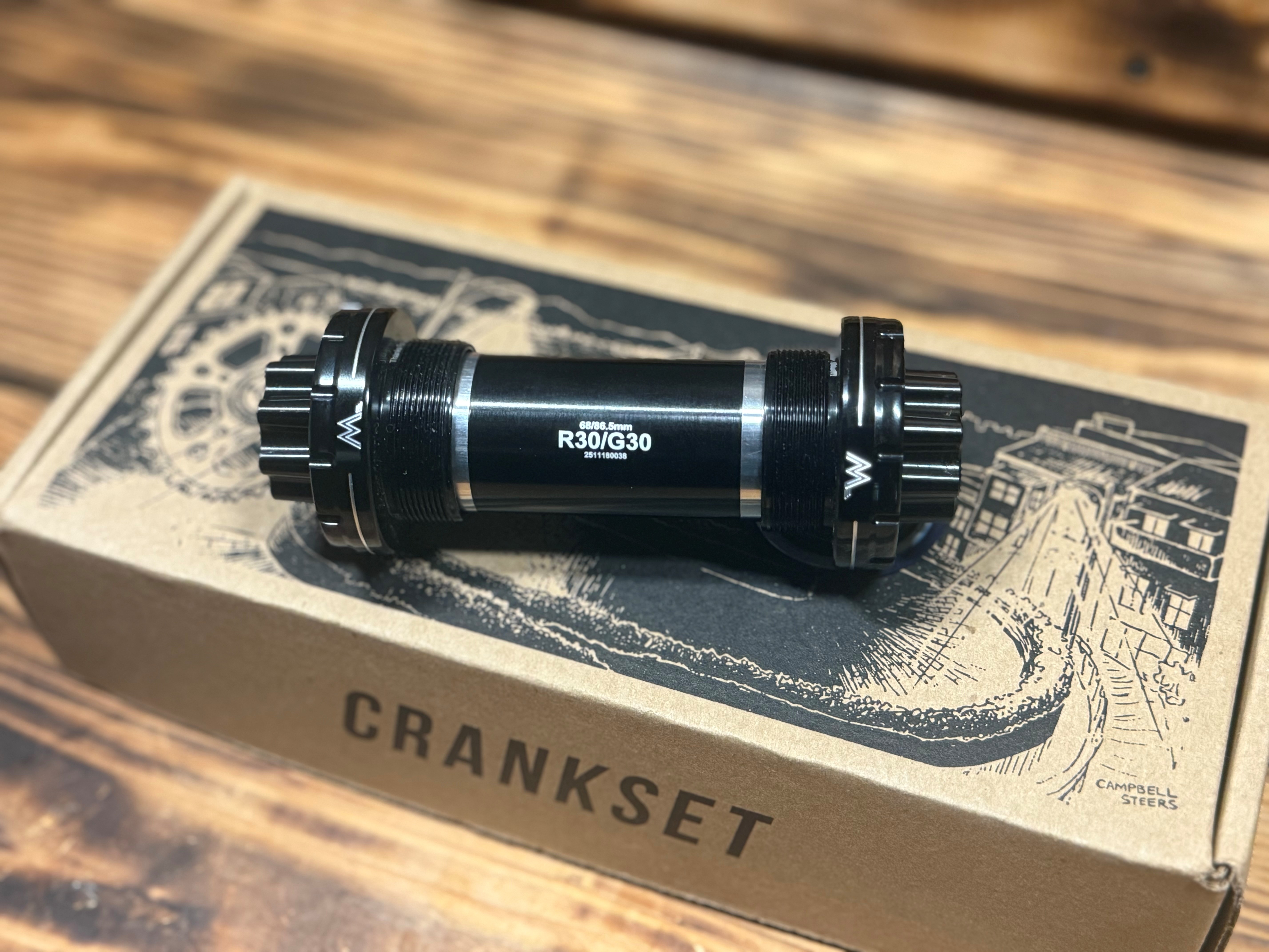 K3純正クランクはスチール系パーツが使われていることもあり、重量はやや重めです。一方でR30クランクは、アルミ削り出しアームと30mmスピンドルを採用した構成となっており、交換することで約100gの軽量化につながりました。数字だけを見ると差は大きくないように感じるかもしれませんが、実際の走り出しでは、その違いを分かりやすく体感することができました。クランクとBBはバイクの「回転部分」にあたるため、重量差以上に踏み出しの軽さや回転のスムーズさを直感的に感じやすいですね。