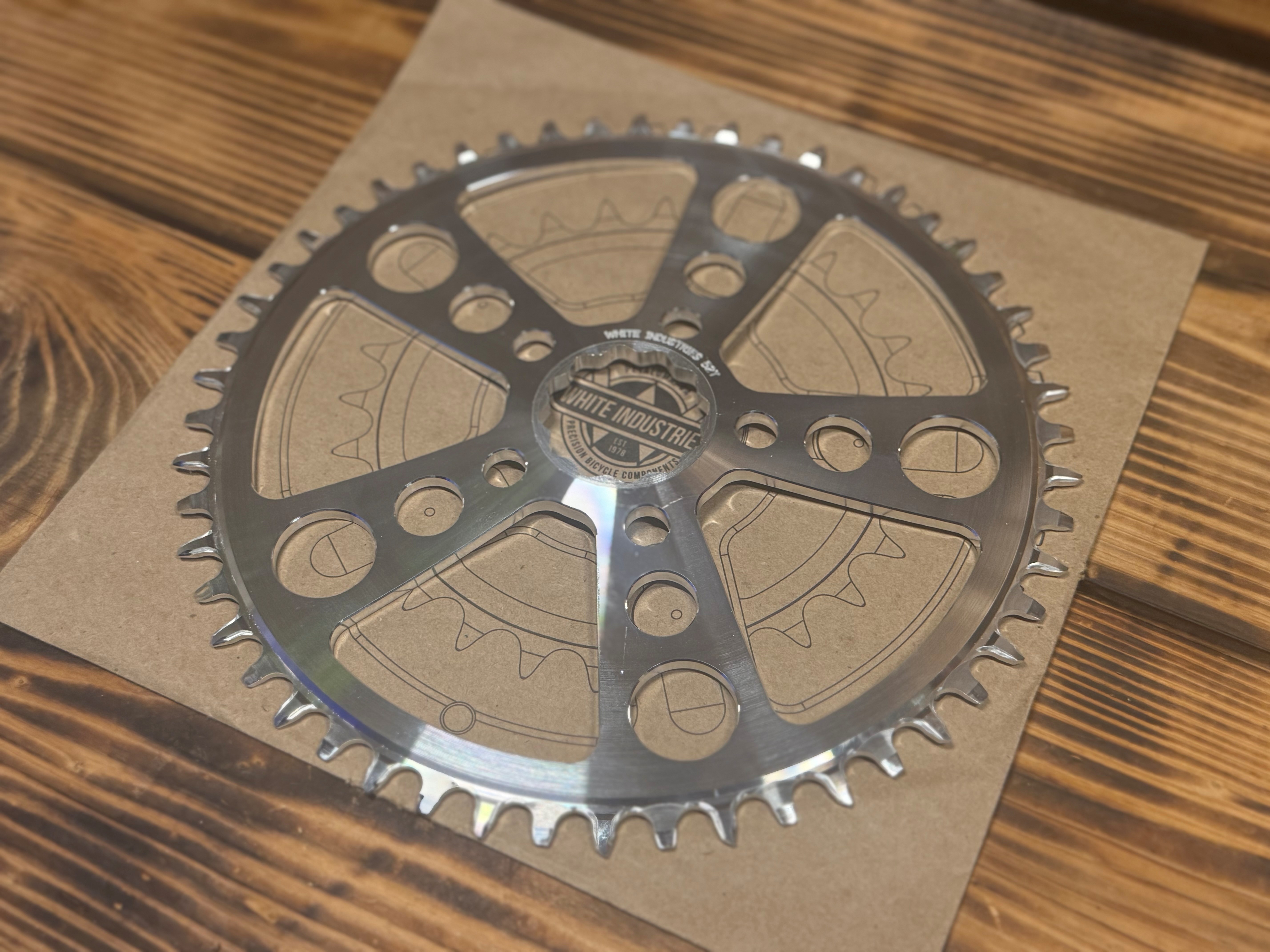 DAHON K3の標準チェーンリングは53T。コンパクトな車体に大径チェーンリングの組み合わせが、K3らしい軽快で伸びのある走りを生み出しています。ただ、のんびり走りたい日には「もう少し楽でもいいかも」と感じることもあります。実際、広島店スタッフの中にも、その理由でフロントの丁数を下げるカスタムをしている人がいます。今回選んだのが52T。たった1Tの差ですが、踏み込みが少し穏やかになり、気持ちにも余裕が出てきます。この52Tを用意しているのがWhite Industriesでした。同社のチェーンリングは最大丁数が52Tで見た目のシルバーの質感もかなり良くWhite Industries一択でした!!K3はフロントチェーンリングの存在感が大きいバイクだからこそ丁数を変えるだけで、走り心地も、佇まいも大きく変化しますね!