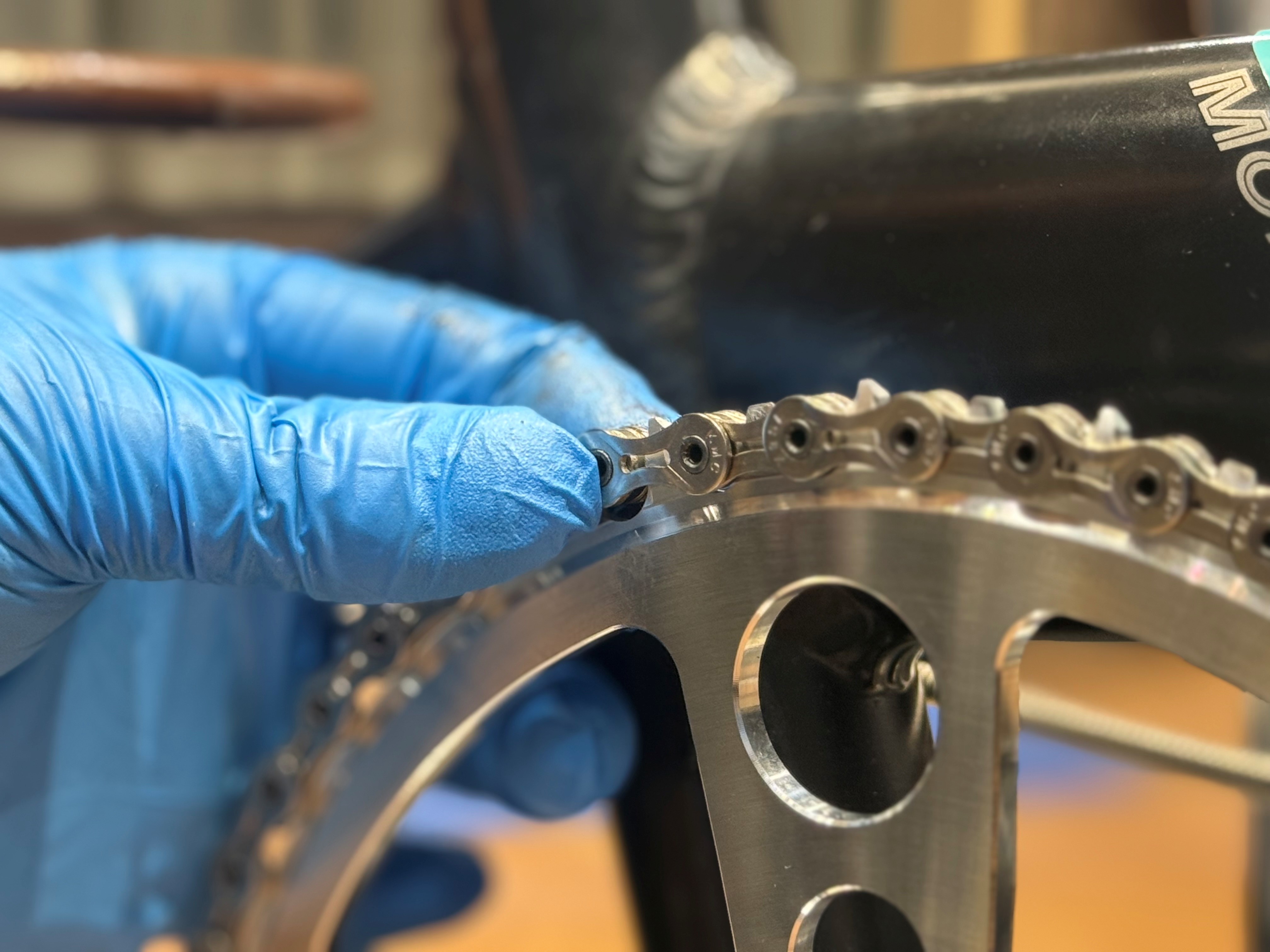 今回選択したチェーンリングは”ナローワイド”チェーリングといいまして歯形が細い歯と太い歯を交互に配置することで、チェーンと歯形がしっかり入り込みやすく固定されチェーン落ちがしにくいです。実際にチェーンを引っ張ってみてもしっかり入り込んで全然外れませんでした。