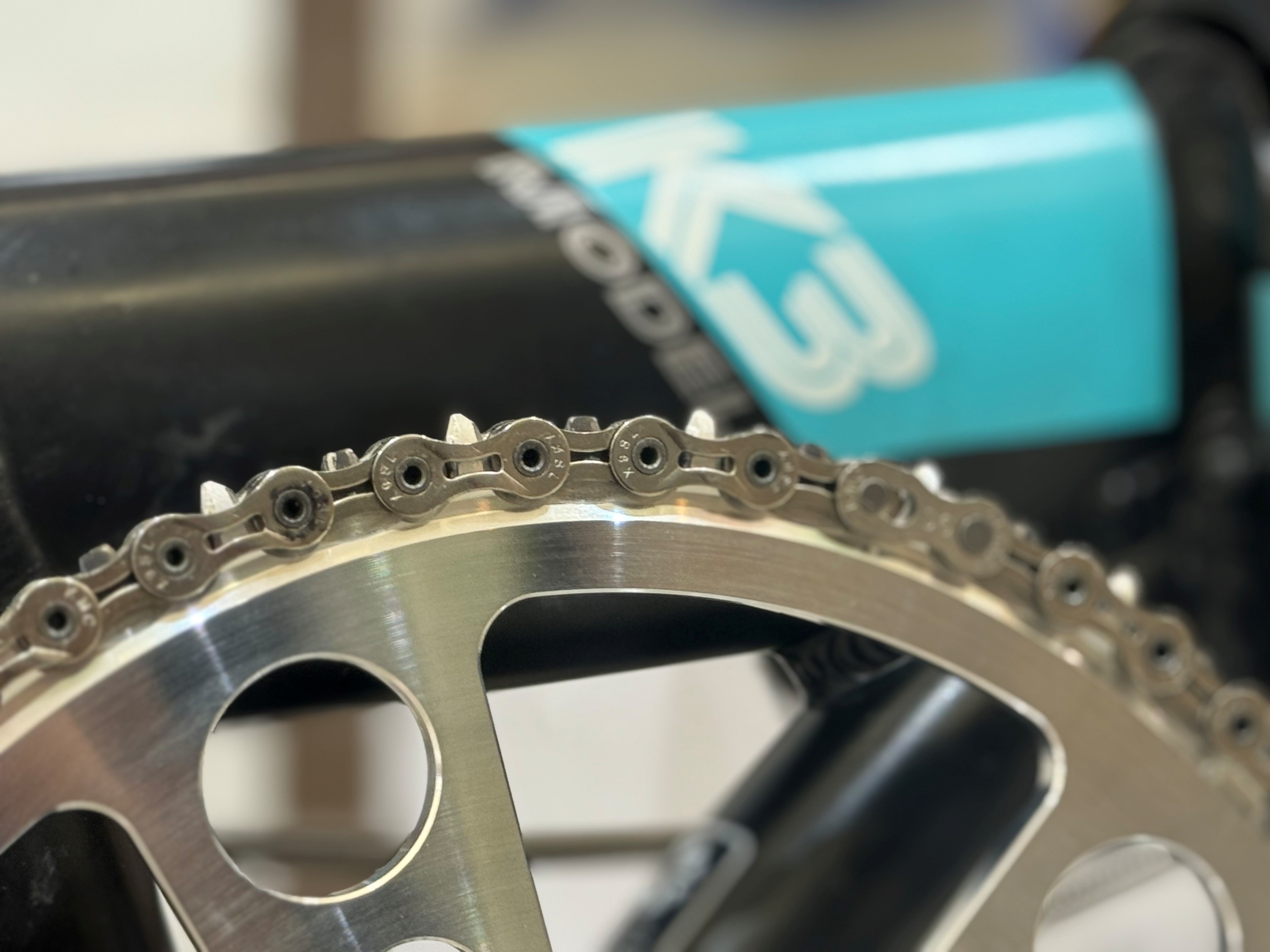 このチェーンの一番の魅力は、軽くて耐久性が高いところです。シルバー仕上げなので見た目もキレイで、錆や汚れにも強いコーティングがされているんです。SHIMANOのチェーンも良いですがKMCの方がシルバー感が強い為こちらを選択しました。リンクの形も工夫されていて、摩擦を減らすスリムタイプになっているので、変速がとてもスムーズです。またペダリングも軽くなるので、長距離ライドでも快適に走れます。軽さ、耐久性、操作性のバランスが良いチェーンの為カスタムで是非ご検討ください。