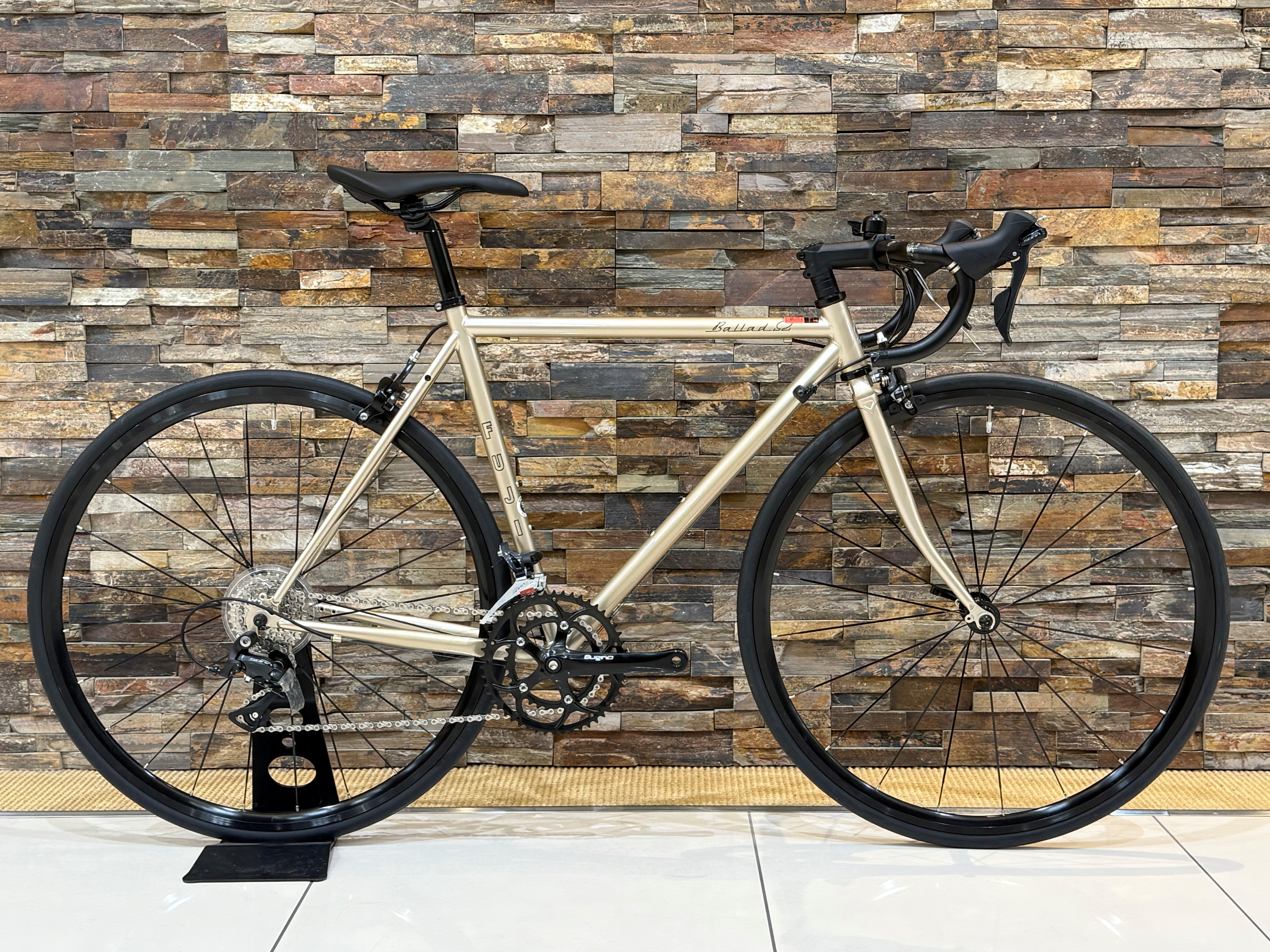 今回ご紹介したカラーリングが廃盤モデルとなっていまして、セール価格にてご案内中です。高級感溢れる”シャンパンゴールド”。お手頃な価格で楽しめるカッコイイロードバイクはBALLAD OMEGAではないでしょうか。