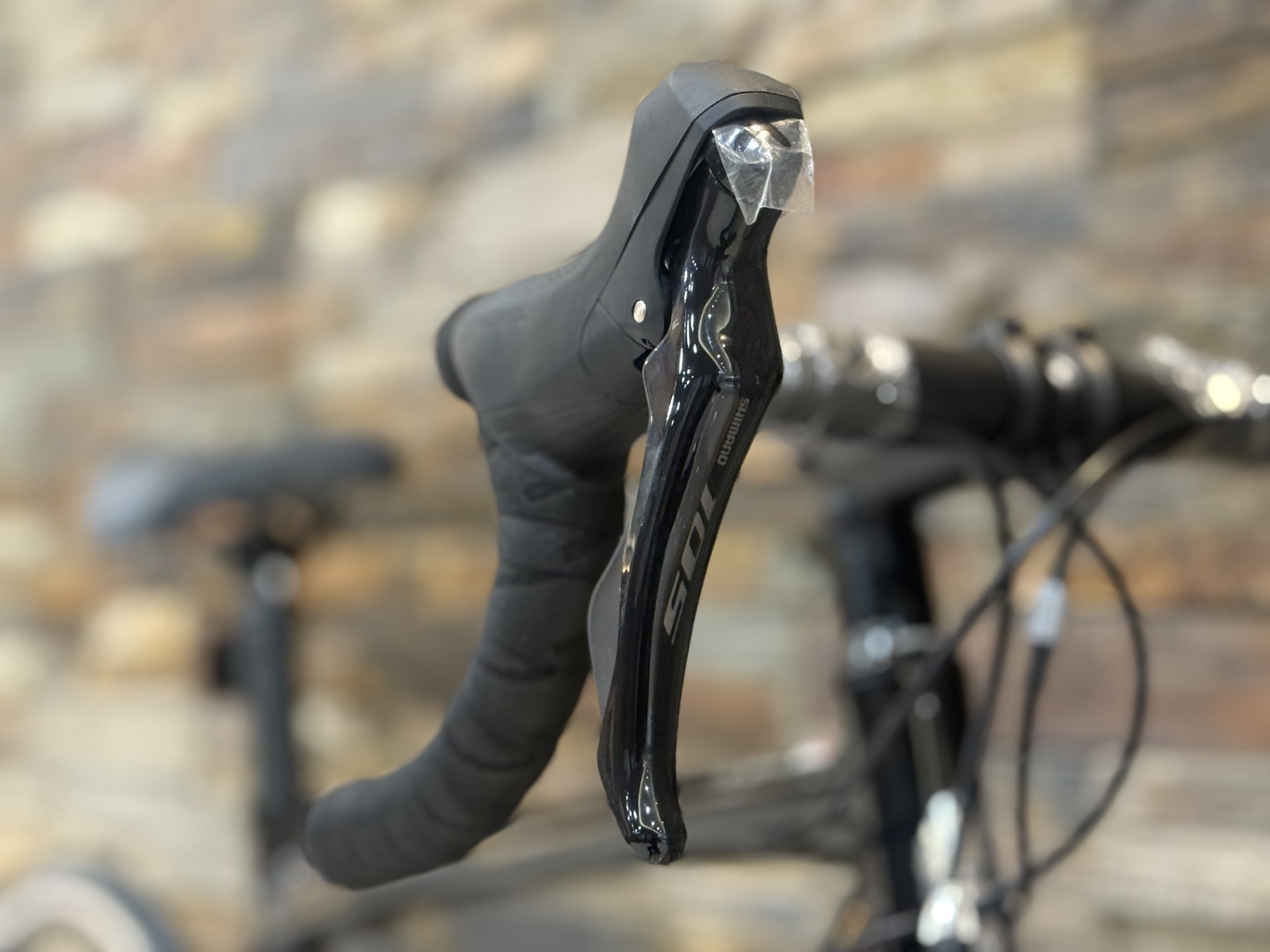 最近はディスクブレーキが主流で、つい「ディスク一択」と思いがちですが、実はそうとも限りません。ディスクはグレードによって制動力や操作感に差がありますし、どうしても重量は増えがち。その点、キャリパーブレーキはシンプルで軽量。しかも105グレードになると制動力はかなり優秀で、「ディスクいらなくない?」と思ってしまうほどしっかり効きます。軽さと性能を重視したい方には、かなり魅力的な一台ですよ。